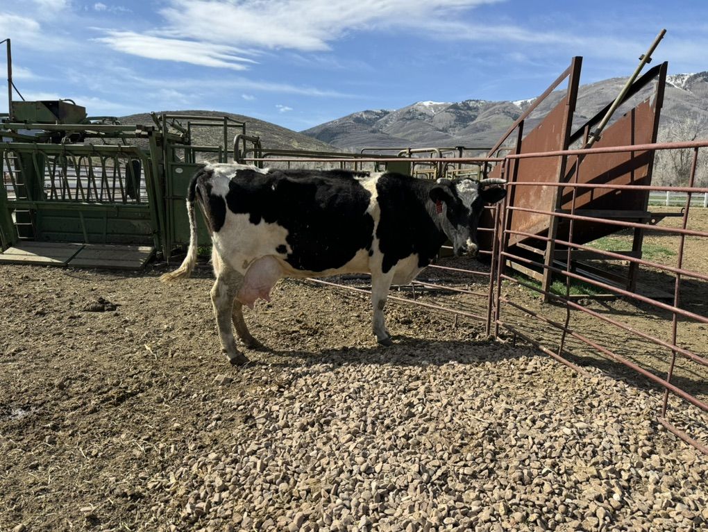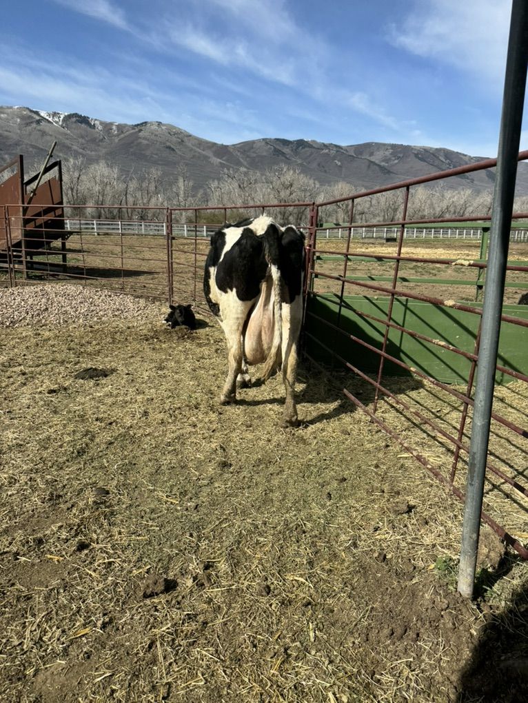 Holstein cow raised a couple extra calves last year. She just had this heifer calf yesterday. You can lead her and tie her up. Gentle cow. 4,000 for the pair