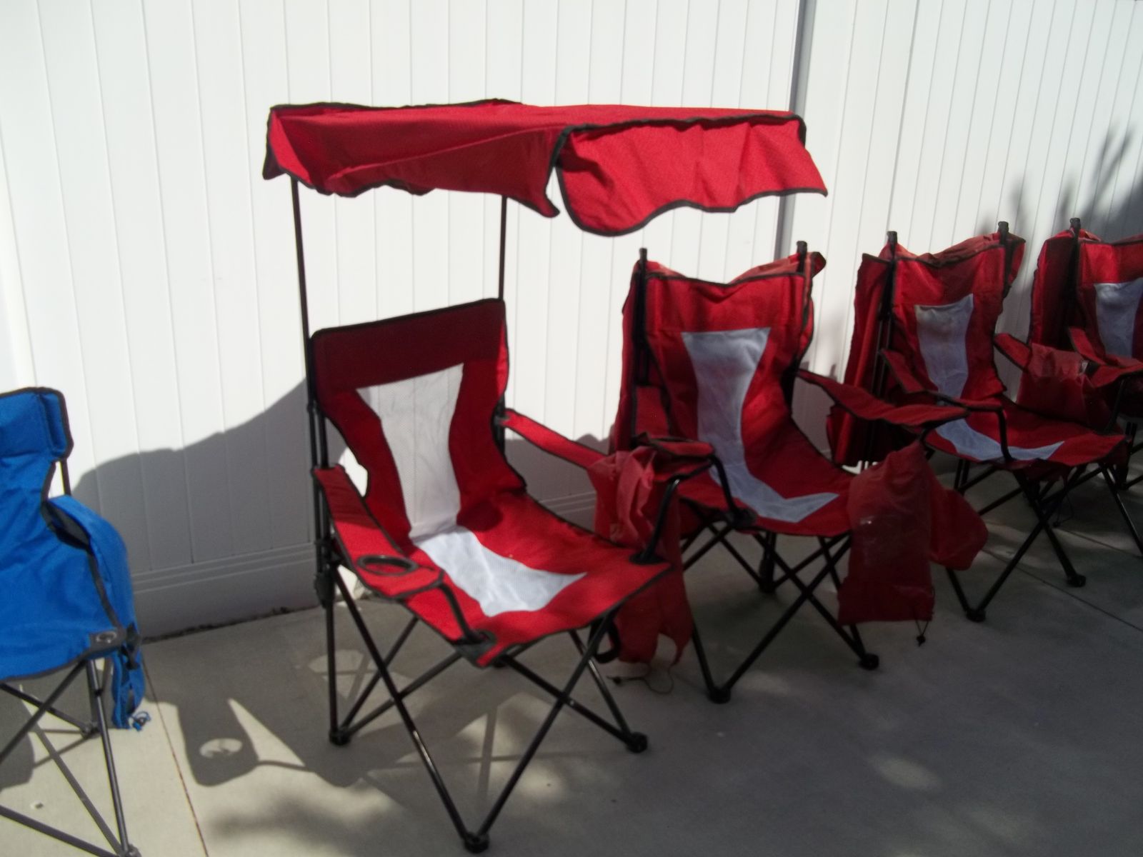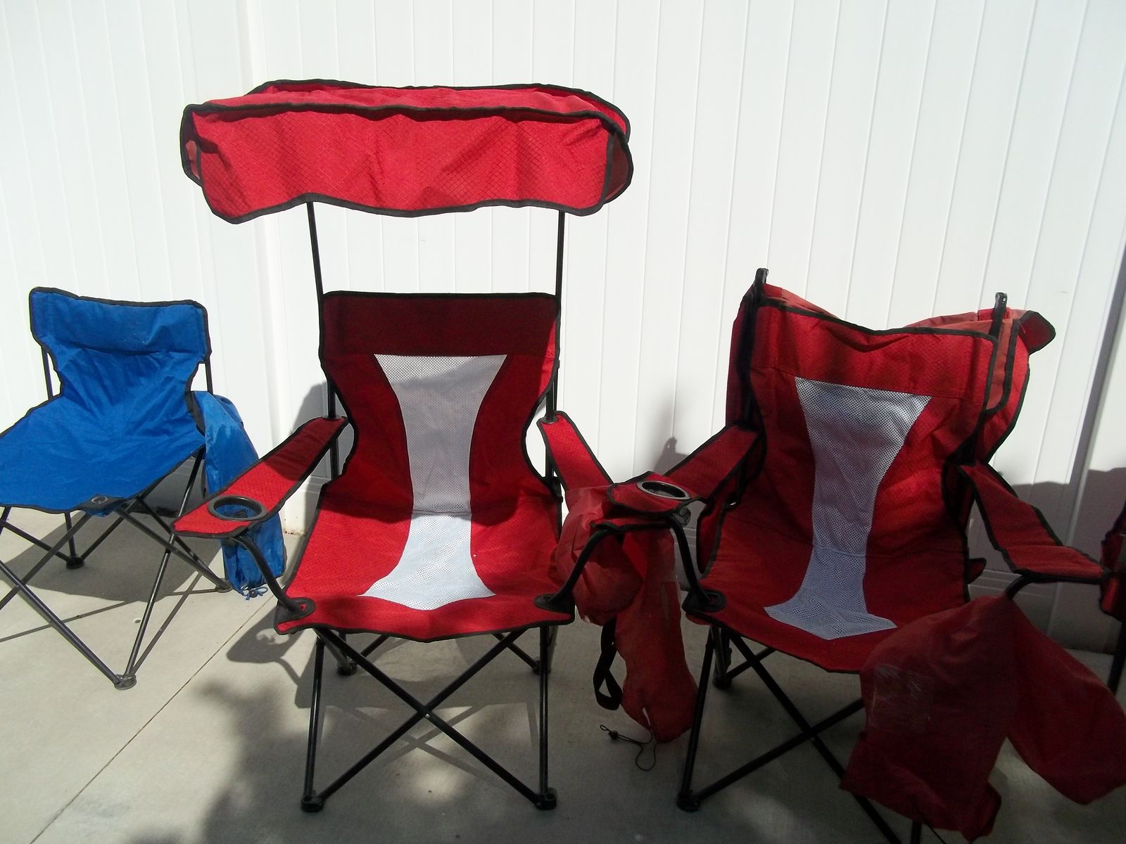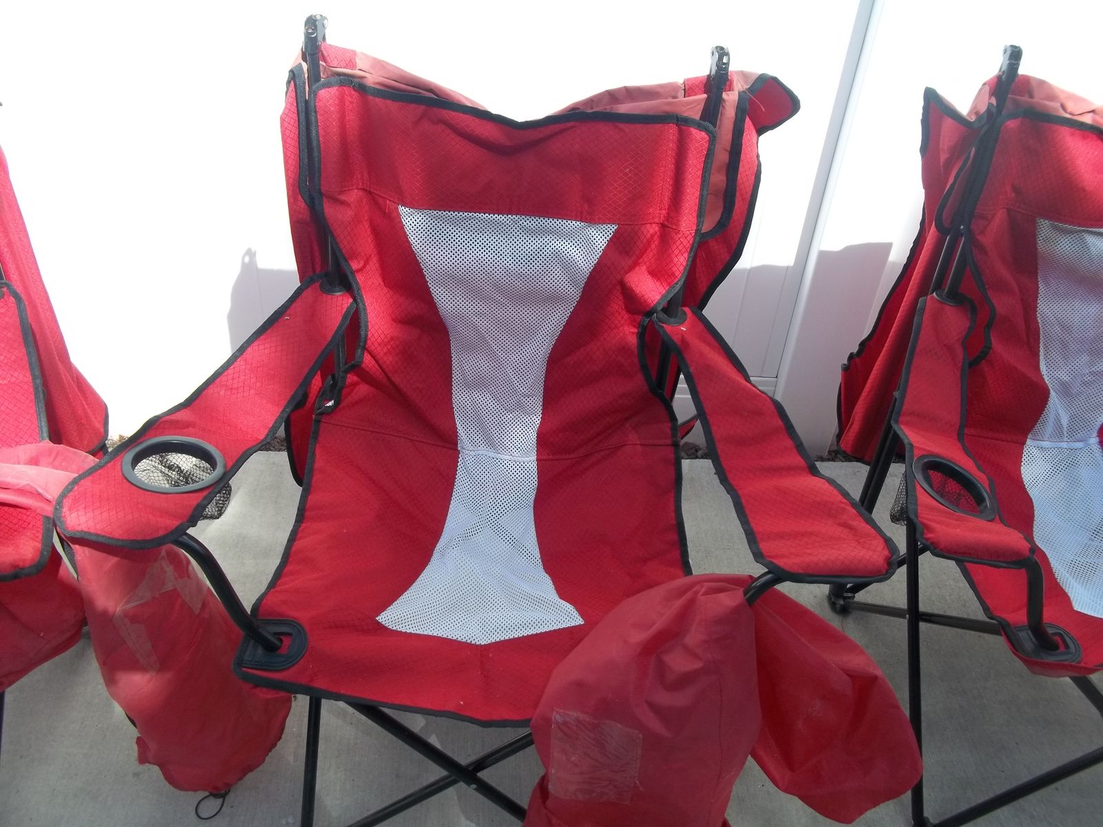 PayPalThese four chairs and tops are in good used condition. One chair has two small holes in the middle netting but is still usable. The bags for these chaie were no good but we had a large duffle type bag they all fit in. The blue chair I will include.