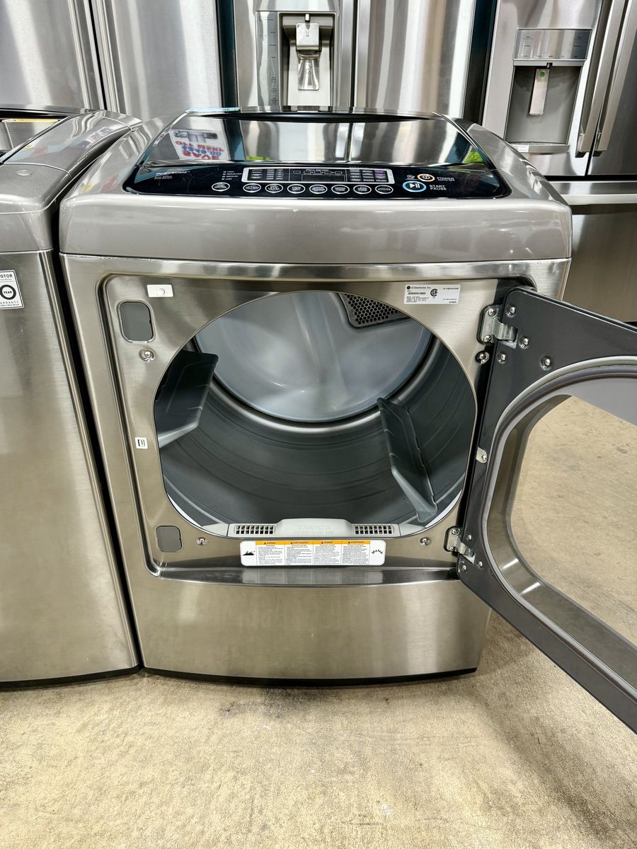 This LG matching washer and dryer set is in excellent working condition. It is loaded with options and is sold with a warranty.