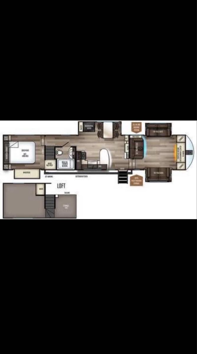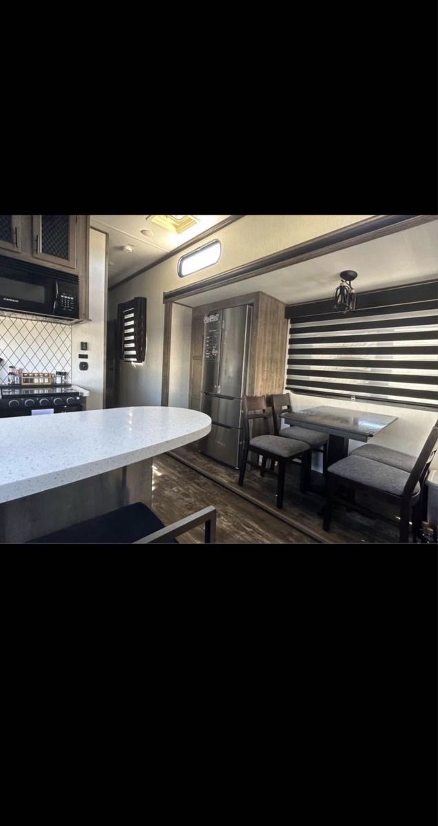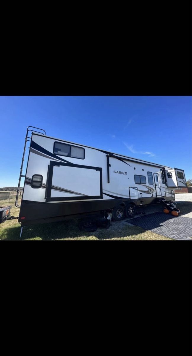 2021 Sabre FLL37 4 slide outs Lots of storage Front living room couches pull out to make a massive bed. New 14ply tires Solar panel Residential fridge Comes with 2 power cords all the adapters, stands,water hoses and filters Back up camera.