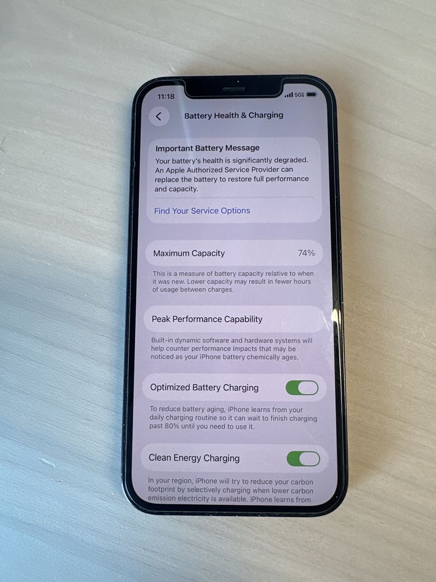 VenmoLike new with screen protector and mag safe case from day 1. Unlocked and ready for any carrier. Setting show 74% overall battery life. Upgraded and don’t need this anymore.