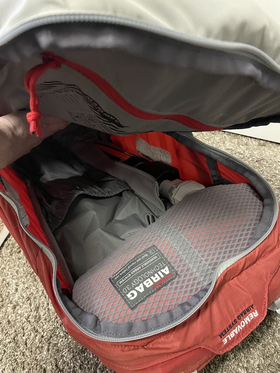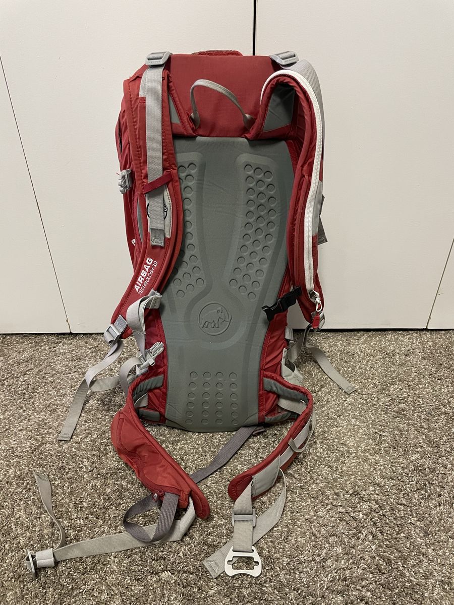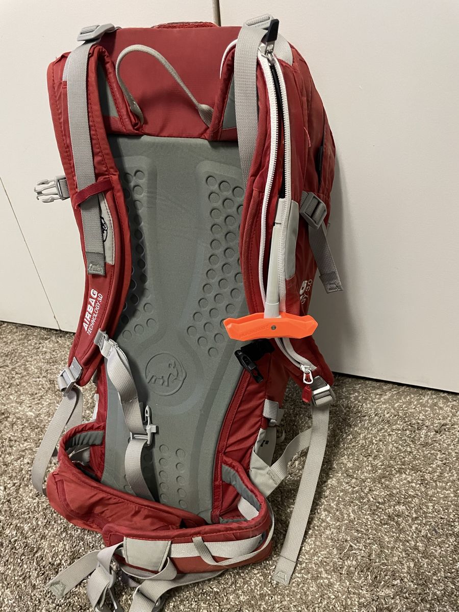 Selling this used but good condition Mammut 30 L avalanche airbag backpack for backcountry skiing / splitboarding. Uses the removable airbag system 3.0 (RAS). No rips or tears anywhere on the pack. Comes with a filled and ready to go gas cartridge and a couple unused refill kits. Tested last winter and worked flawlessly.