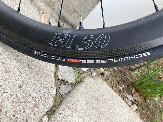 ICan FL50 wheels set up tubeless with Sapiam aero spokes.