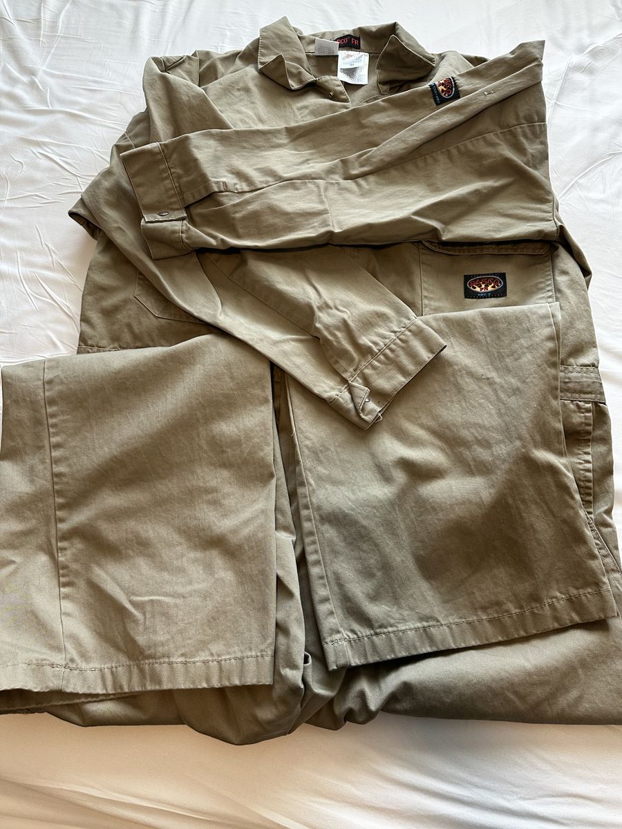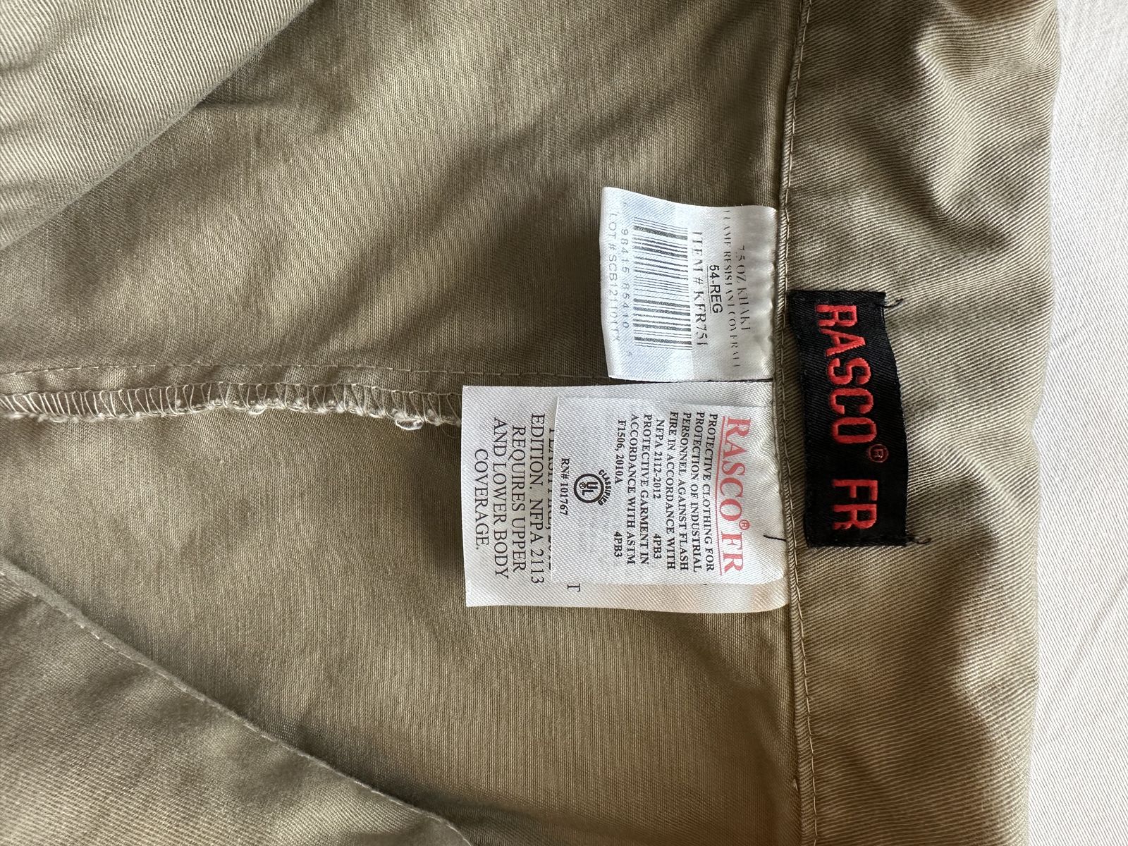 Flame Resistant Coveralls Worn once Size: 54 Regular Color Khaki