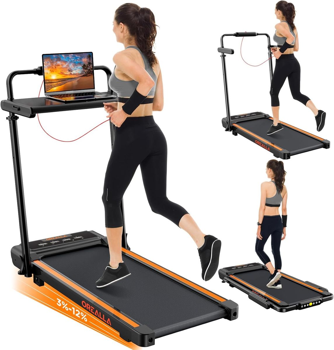 Retailer's Title: Walking Pad with 12% Incline, Under Desk Walking Pad Treadmill with Handle Bar & Removable Desk Workstation, 3 in 1 3.5HP Foldable Treadmill 300lbs Capacity for Home Office with Remote Control