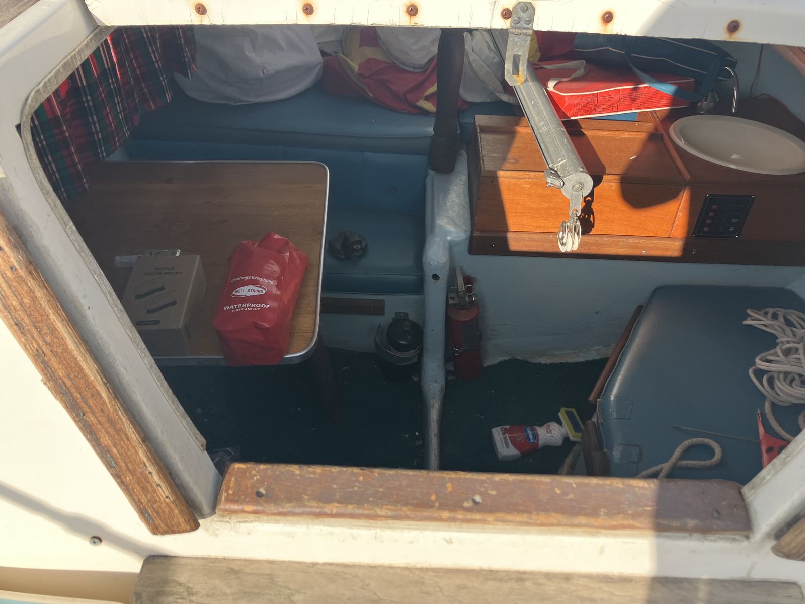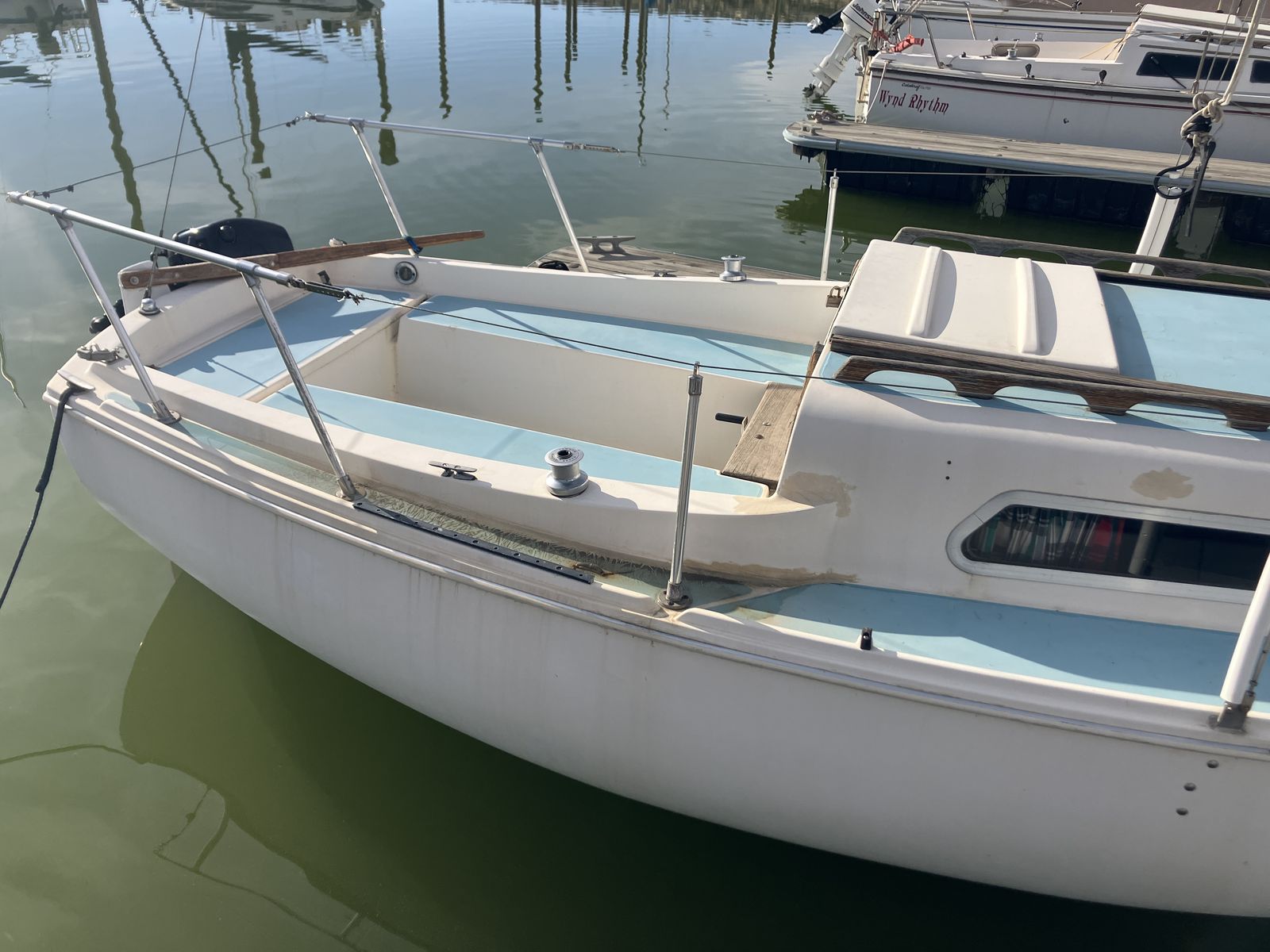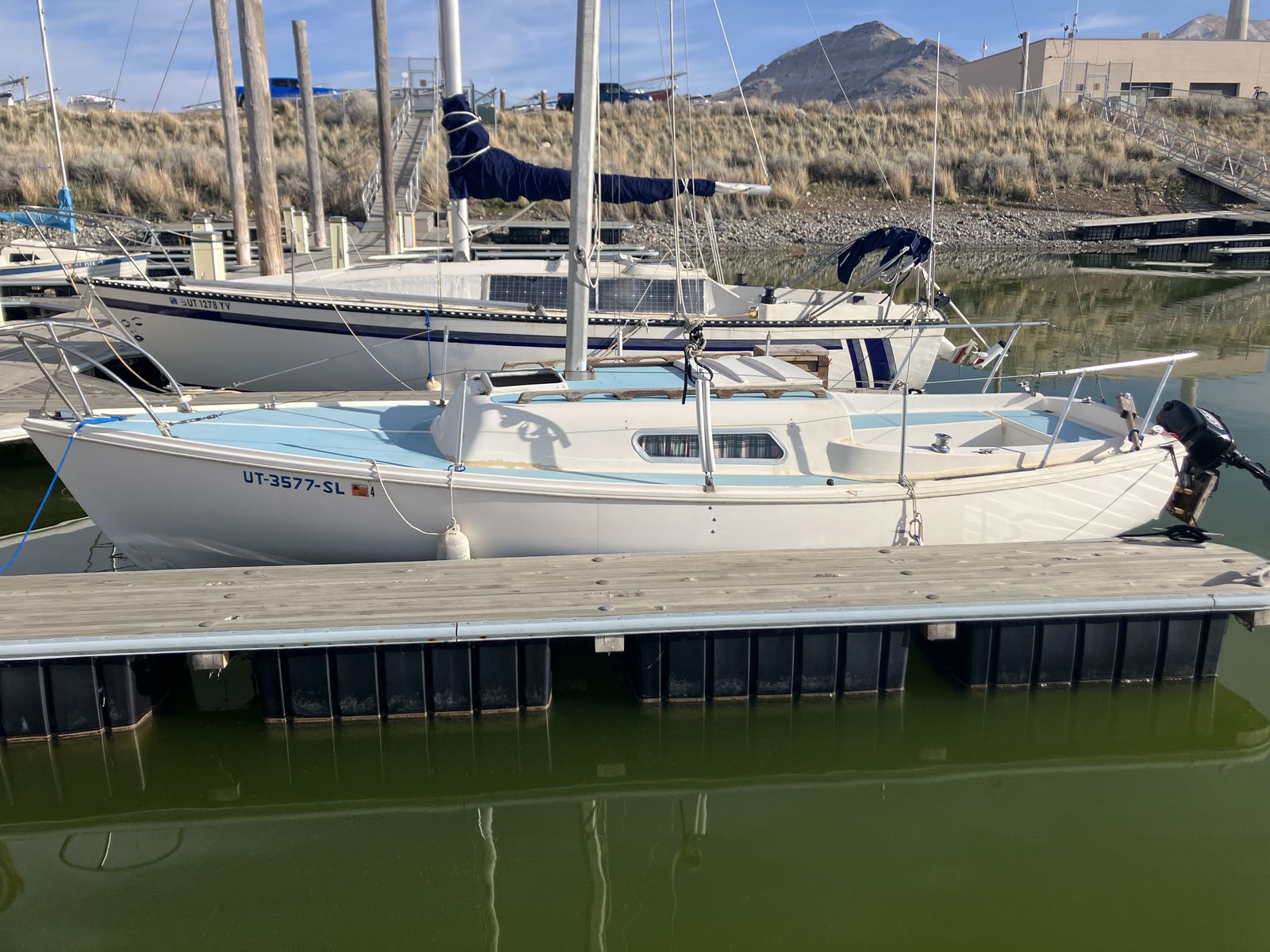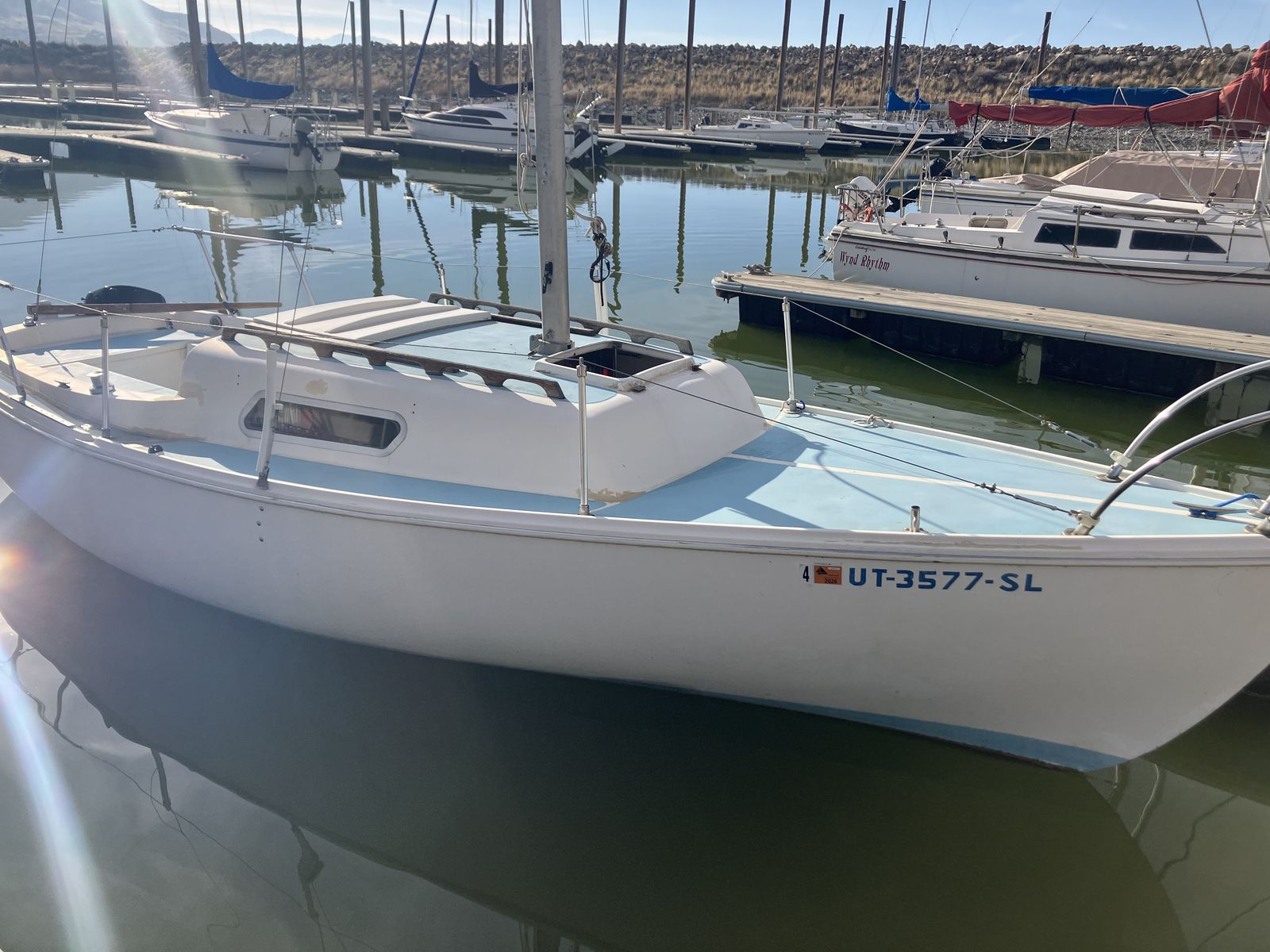 Boat is seaworthy, she's in a slip at the GSL marina. Outboard works, comes with trailer and everything. Boom/sails/rigging/anchor all in cabin. Needs some cleaning and a little TLC but nothing major from what I can tell. The bow hatch is missing and needs replaced.