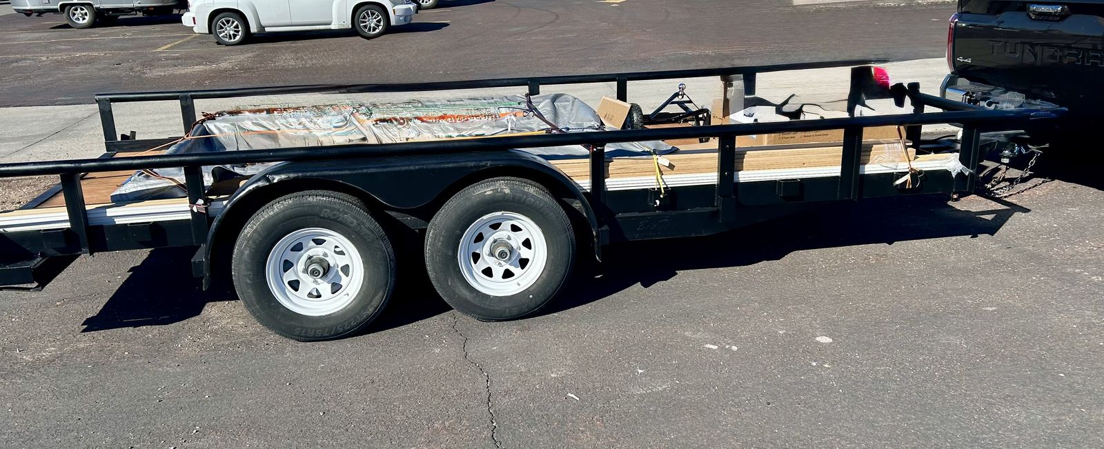 Heavy duty 16 ft double axel trailer 1994 - wheels have been repacked new tires, new treated wood decking, new jack, had ramp, $1999