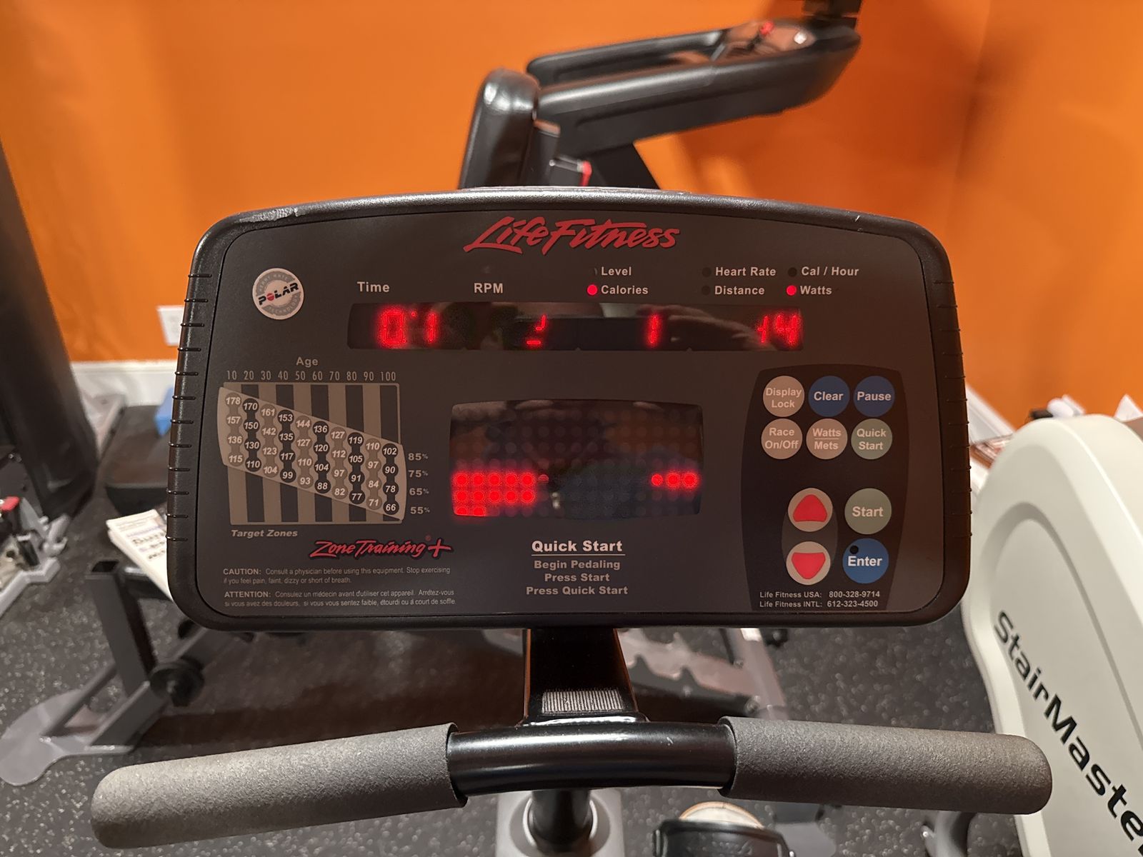 VenmoPremium Life Fitness R7 (LifeCycle) recumbent exercise bike in excellent condition. This is a commercial-grade machine known for durability, smooth performance, and superior comfort—perfect for home gyms or serious fitness users.
