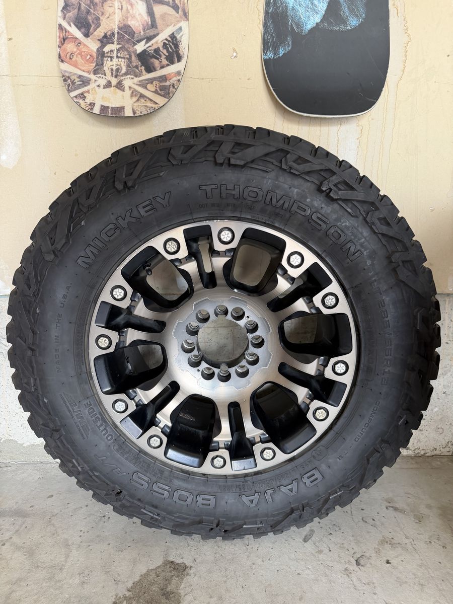 18inch 6 x 135 Fuel Vapor wheels and Mickey Thompson Baja Boss tires up for sale. Ford 150