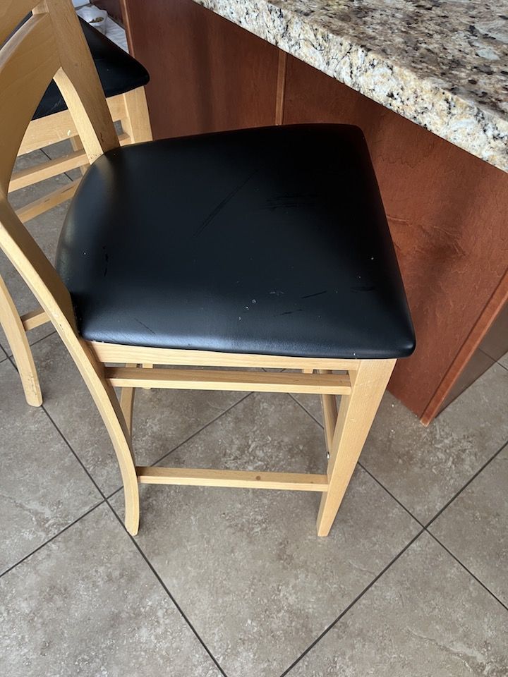 VenmoVintage Lowenstein Wood Stool Wood frame with black vinyl seat