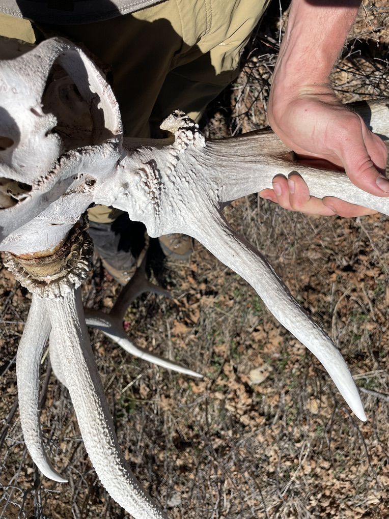 Super cool dead head bull with one broken pedicle. Salvage tag in hand. Found in Utah.