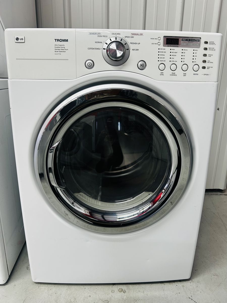 Lg Tromm dryer electric 7.3 cu ft ultra capacity durable drying quiet operation stainless steel drum heavy duty cotton towels normal perm press delicate speed dry freshen up air dry time dry wrinkle care anti bacterial damp dry etc..It works great, clean, 45 day warranty, delivery/install available.