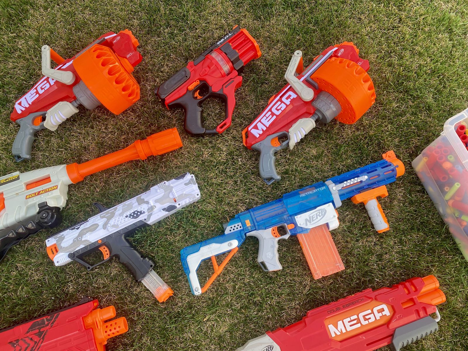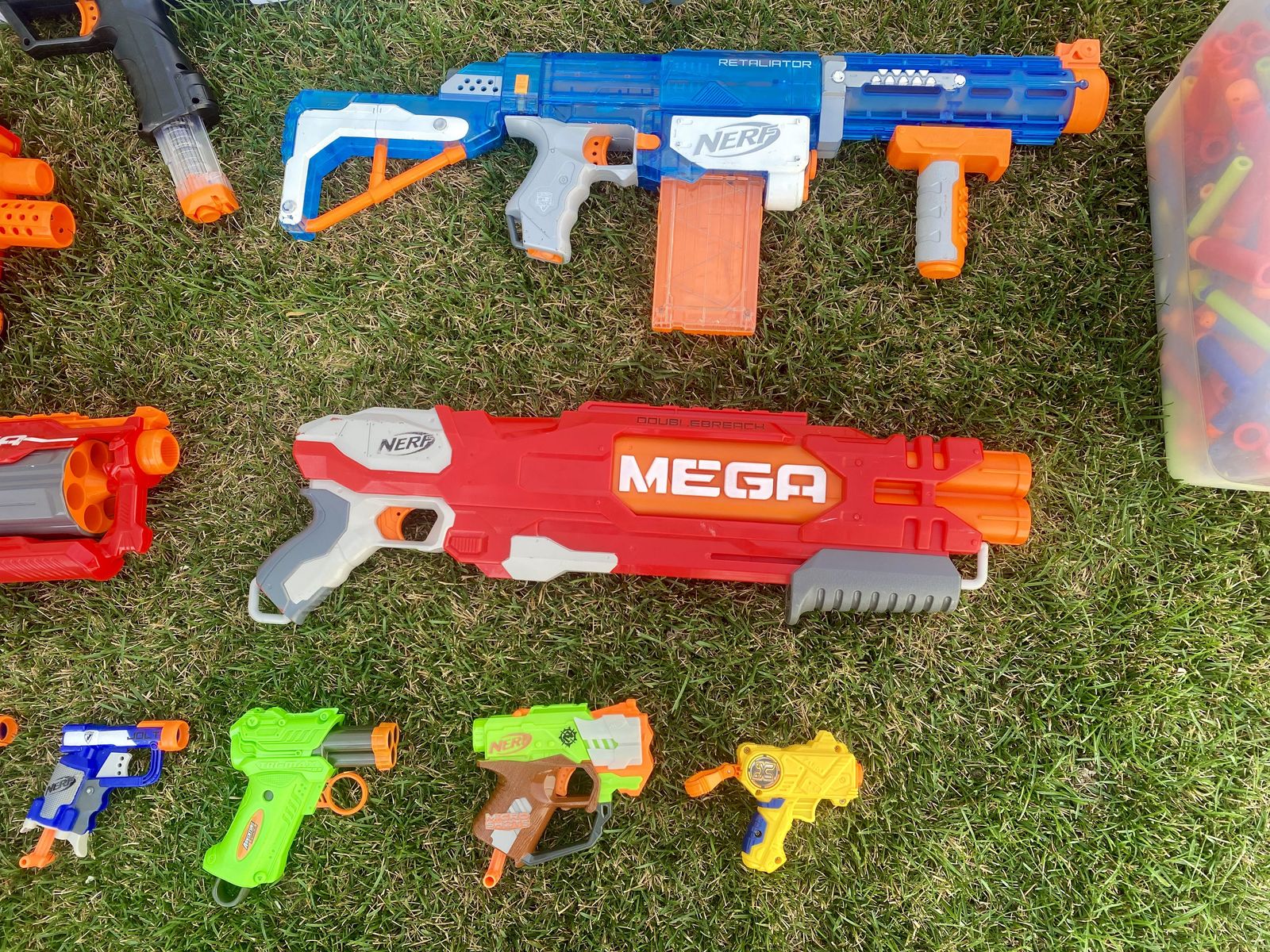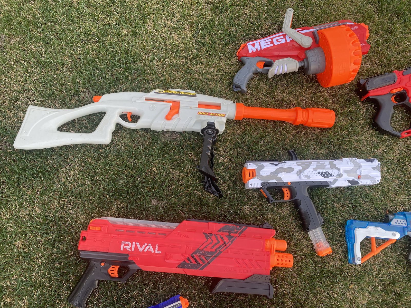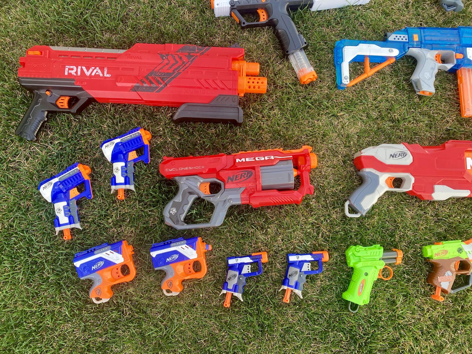 VenmoIncludes: Nerf Retaliator, Nerf DoubleBreach, Nerf Rival XVI-1200, Nerf Rival XV-700, Nerf Rival XX-1500, Nerf Mega CycloneShock, Two Nerf Megalodons (20x1), and Buzz Bee Air Warriors Range Master, Two Nerf Triad EX-3's, Two Nerf Reflex IX-1's, Two Nerf Jolts, Nerf Micro Shots, Adventure Force Tri-Max, and a Zuru.