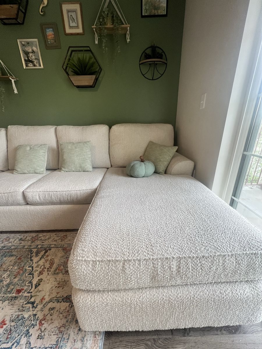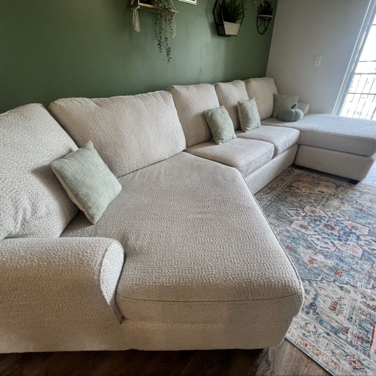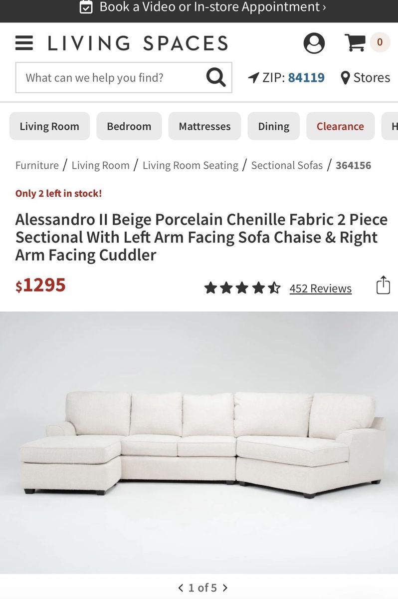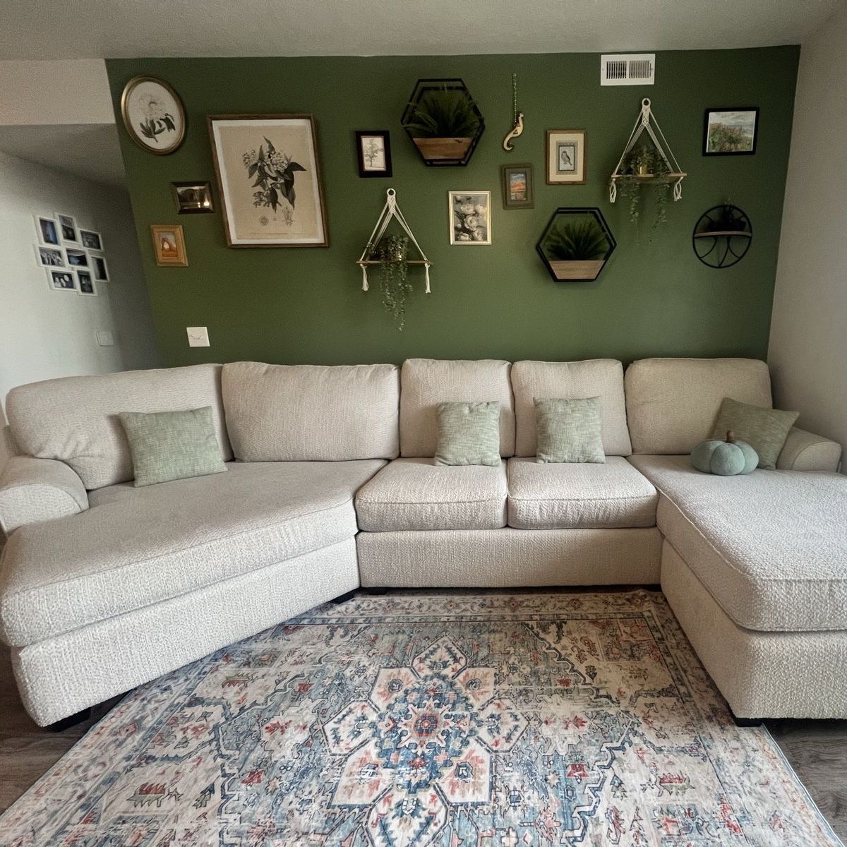 Excellent condition Living Spaces sectional -Only 6 months old. -Pet-free and smoke-free home -No stains or damage. -Includes left-facing chaise + right-facing cuddler.