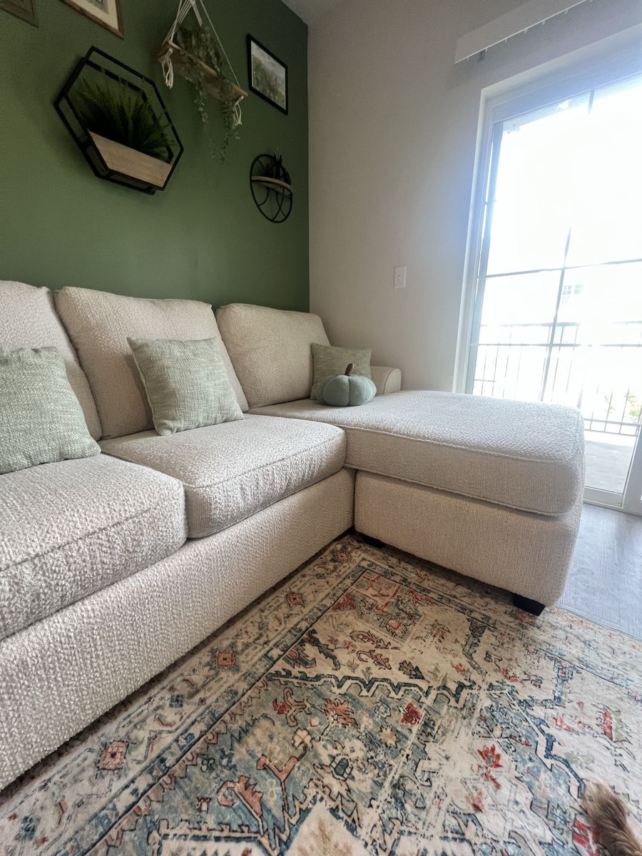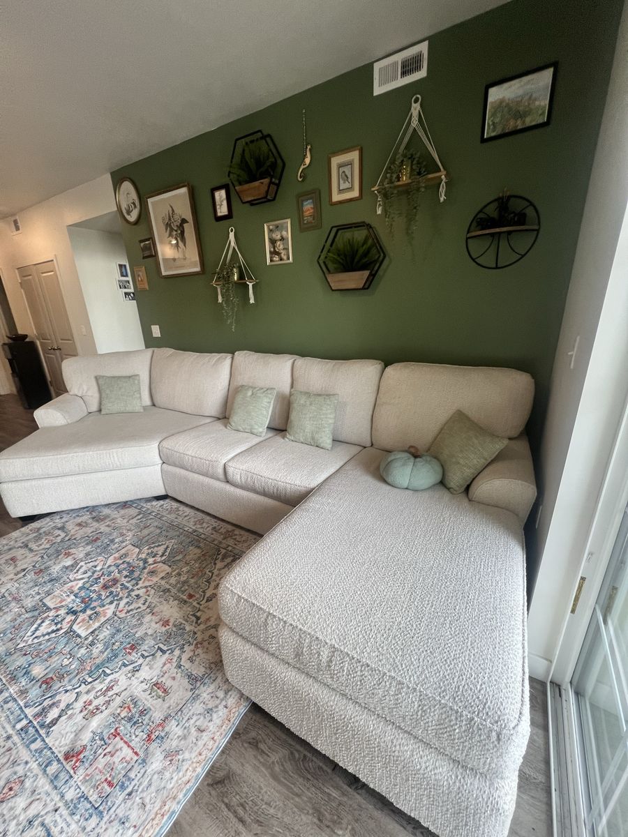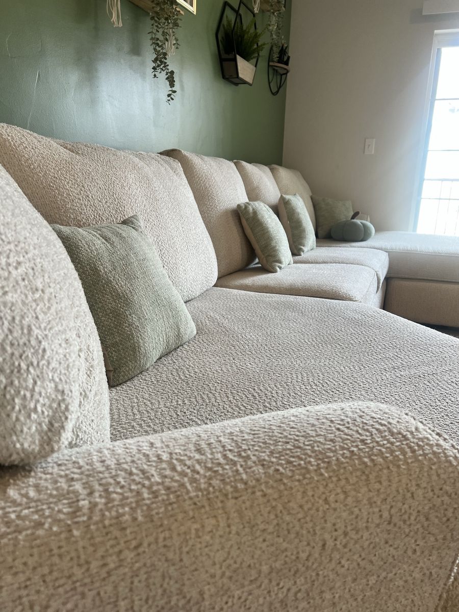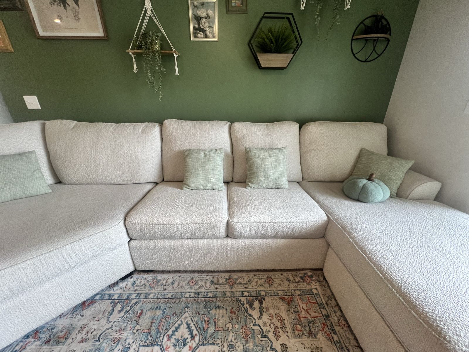 Excellent condition Living Spaces sectional -Only 6 months old. -Pet-free and smoke-free home -No stains or damage. -Includes left-facing chaise + right-facing cuddler.