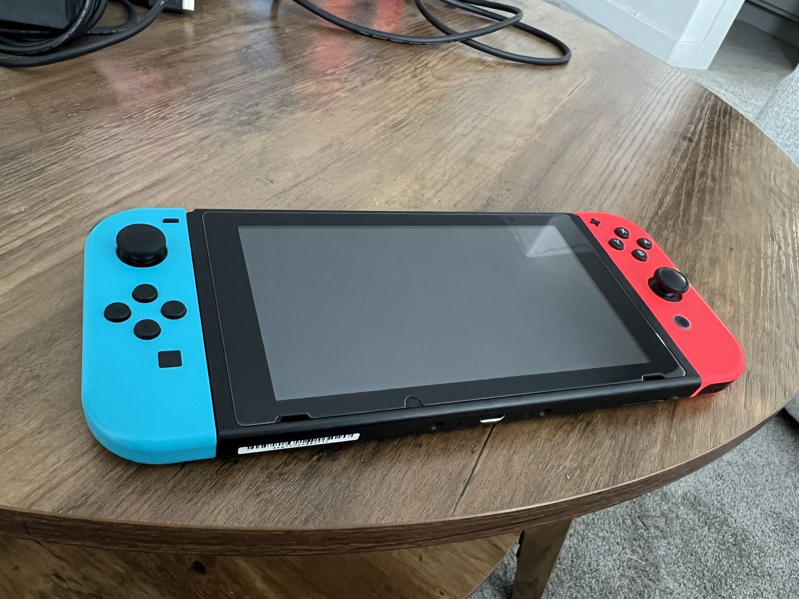VenmoThis Switch is in perfect condition, no dents, stratches, etc. It has a glass screen protector installed, as well as comes with an extra 256 GB SD card inserted in the device for extra storage. Also comes with a nice hard-case for the switch, that holds lots of game cartridges. Comes with Joy cons, which are in great shape, Joy con straps, docking station, power chord, and HDMI chord. This is everything you need to jump right in, and more!