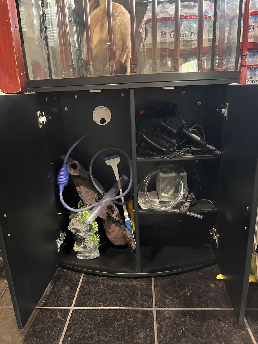 VenmoBought this a few years ago to start some pond koi. Used it for about 3 months and it has been empty since. There’s some random bits in the stand too. New tank and stand retails at $250, so price is more than half off please no low ballers. Stand dimensions 31”x30”x15” Tank dimensions 21”x31.5”x15.5”