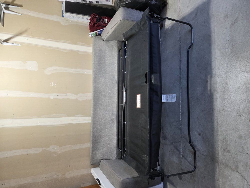 Sofa bed size queen silver colored Gavin. This is resting in my garage and you need a new home.
