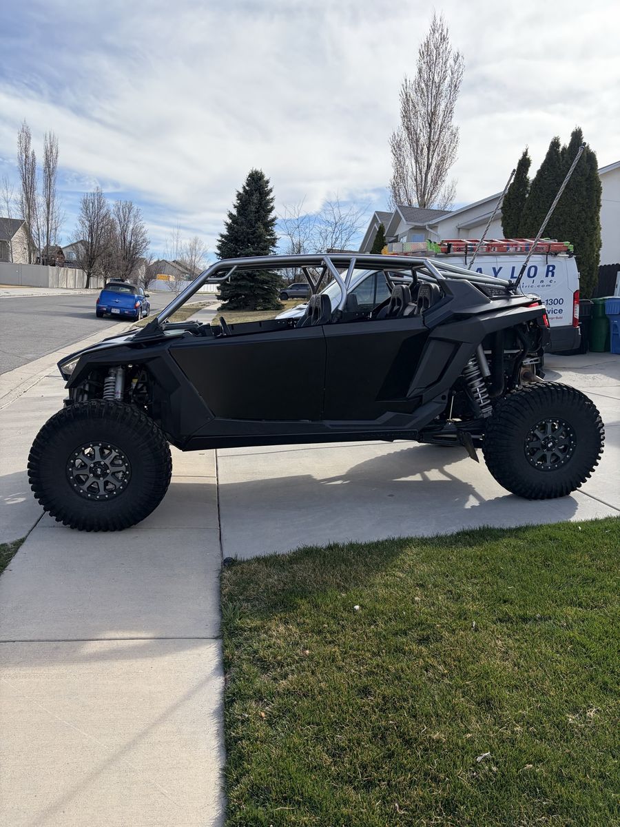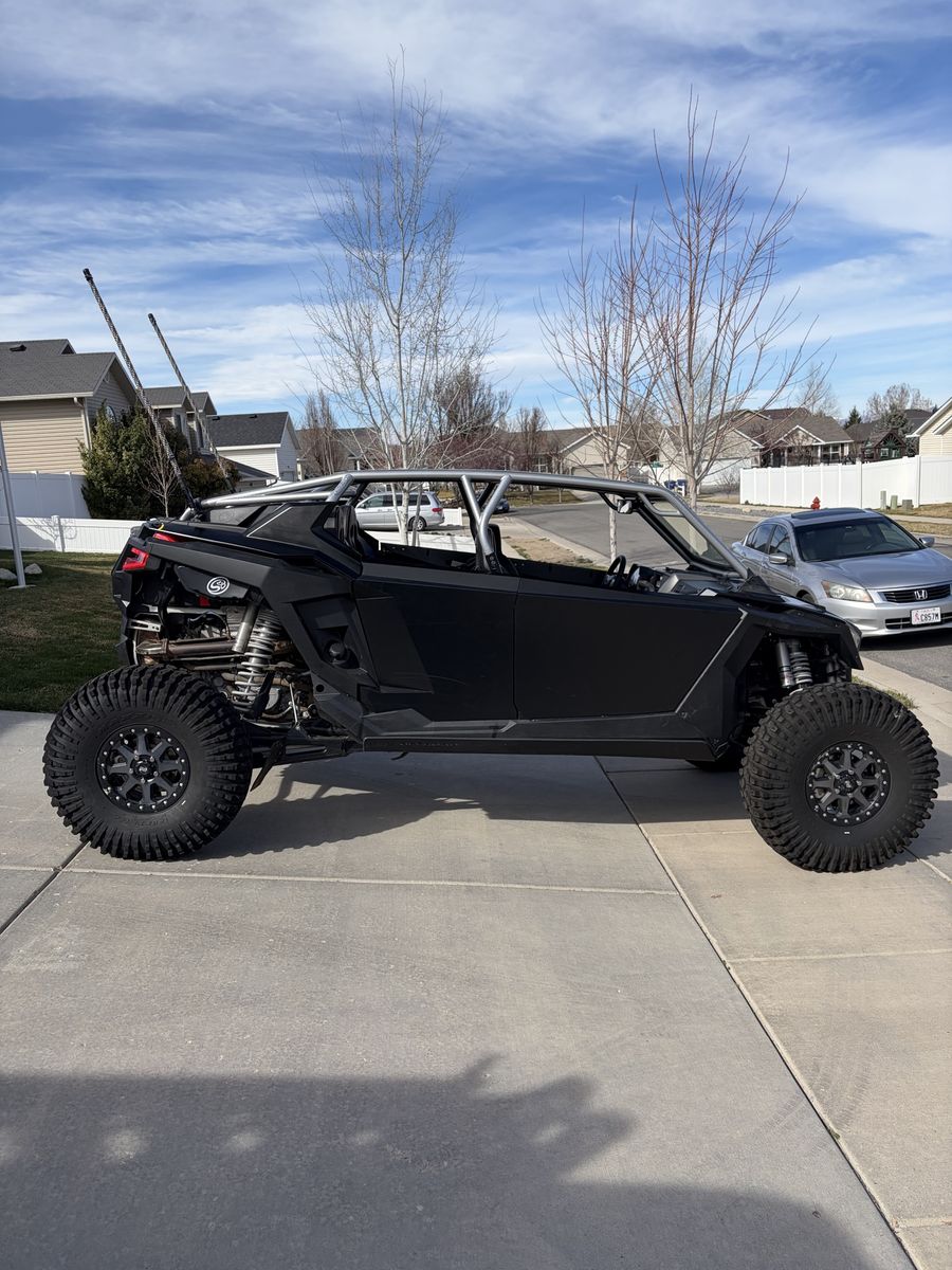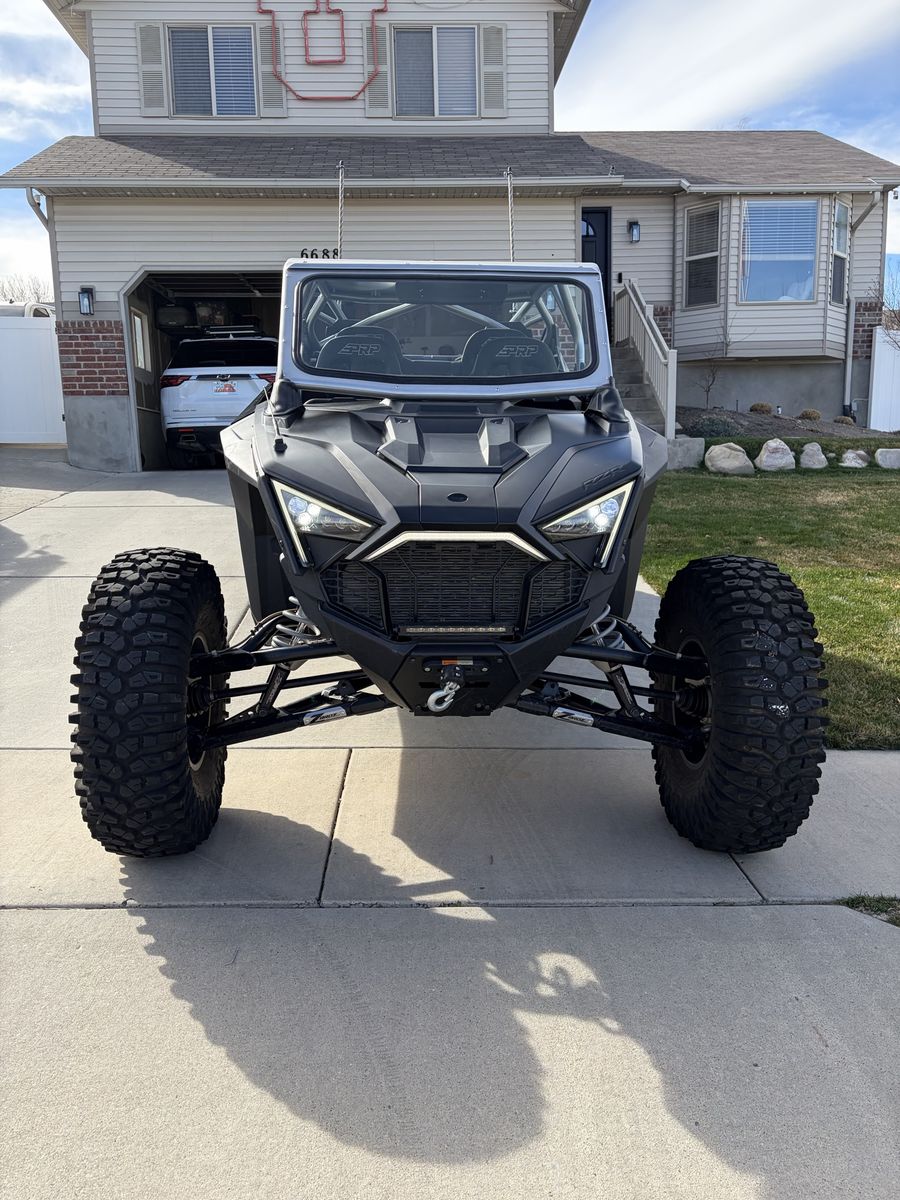 Premium trim & Ride Command GPS Hindenburg Roll Cage PRP GT4 Front Seats + Rear Bench & PRP Harnesses Middle seat Harness Z Bros High-Clearance A-Arms Moto Armor Full Doors + Door Bags 35” Roxxzilla Tires on 15” Tusk Beadlocks IBEXX Stage 2 Clutch Kit Rough Country 4500lb Winch + Front Bumper + Light Bar R1 Industries Rock Lights & Light Whips S&B Particle Separator Full SSS Off-Road Skid Plate RYCO Street Legal Kit Milwaukee Packout Storage + RTIC Cooler Sway Bar Disconnect Links Will come with Chupacabra side mirrors