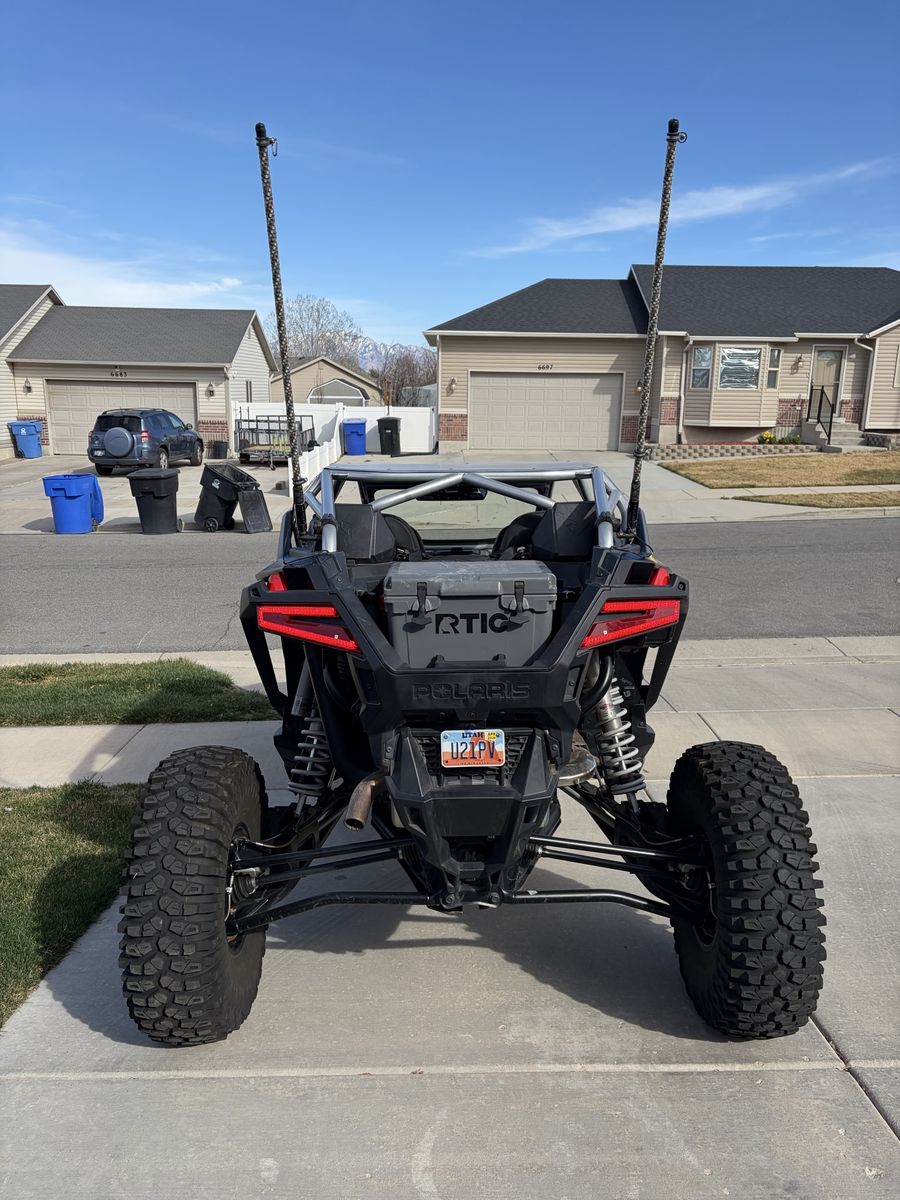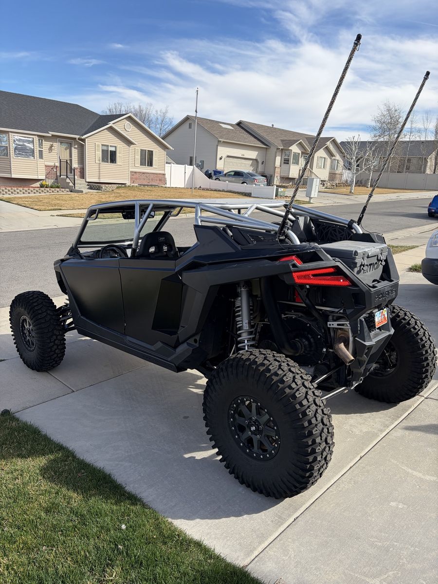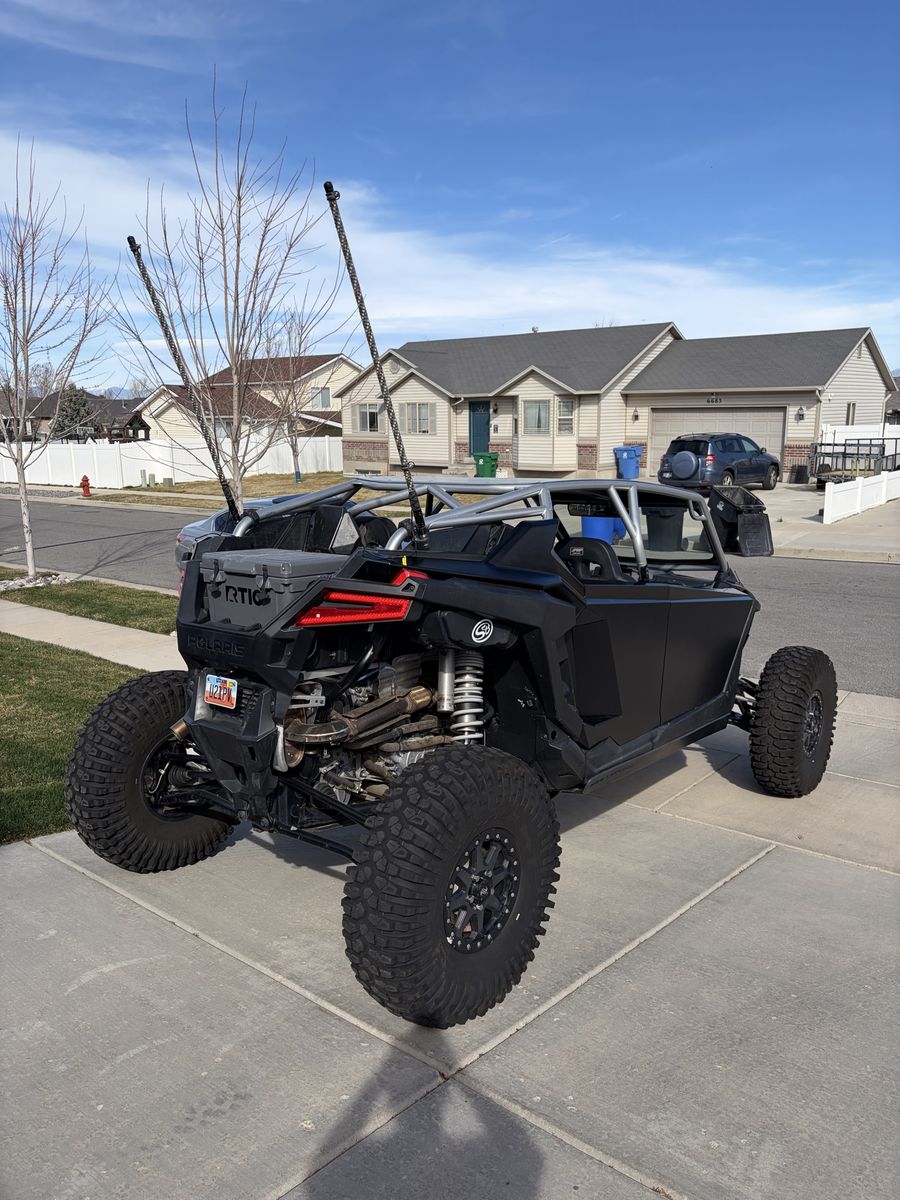 Premium trim & Ride Command GPS Hindenburg Roll Cage PRP GT4 Front Seats + Rear Bench & PRP Harnesses Middle seat Harness Z Bros High-Clearance A-Arms Moto Armor Full Doors + Door Bags 35” Roxxzilla Tires on 15” Tusk Beadlocks IBEXX Stage 2 Clutch Kit Rough Country 4500lb Winch + Front Bumper + Light Bar R1 Industries Rock Lights & Light Whips S&B Particle Separator Full SSS Off-Road Skid Plate RYCO Street Legal Kit Milwaukee Packout Storage + RTIC Cooler Sway Bar Disconnect Links Will come with Chupacabra side mirrors