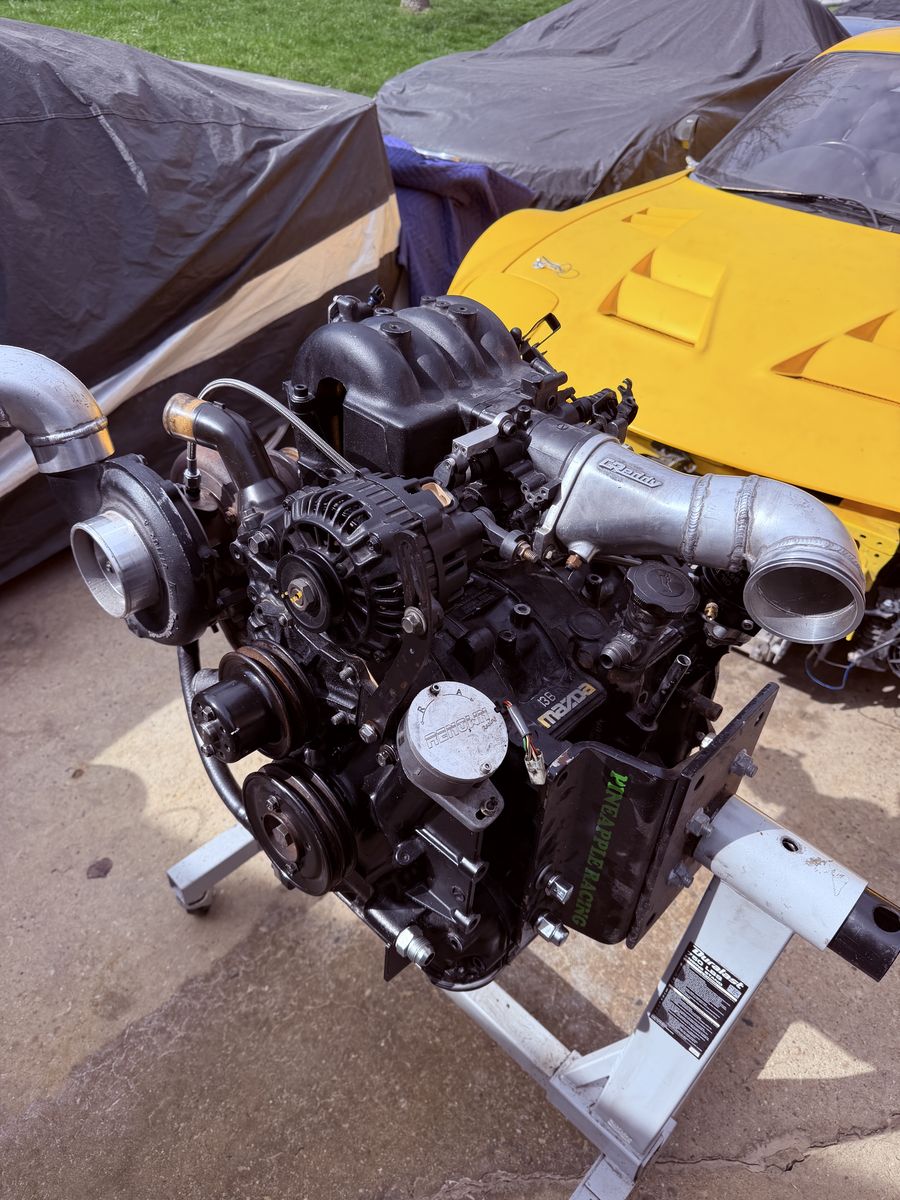 ZelleI have 87-88 13B NA S4 Mazda RX7 Turbo Engine Setup! Included Turbo (Borg Warner 055 BS), Turbo Exhaust Manifold w/Wastgate, AN inlet/outlet Turbo lines, Lower/Upper Intake Manitold for S4 Turbo II (Port Matched), Turbo Il throttle w/TPS, the block is 13B S4 NA six-port, engine also been doweled. Housings within spec, does have some chrome wear, Irons will need to be lapped. Rotating assembly is for S4 NA with rear counter weight. Includes intercooler with intercooler piping, Microtech ECU LT-10s with wire harness. The engine will need to be built, I only assembled to allow take photographs of the setup on how It would look once built. If any further questions, please don't hesitate to ask. Located in Farmington. Must be able to pick up, no holds. Cash only.