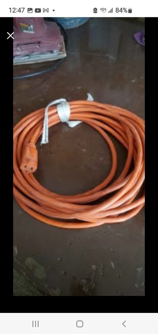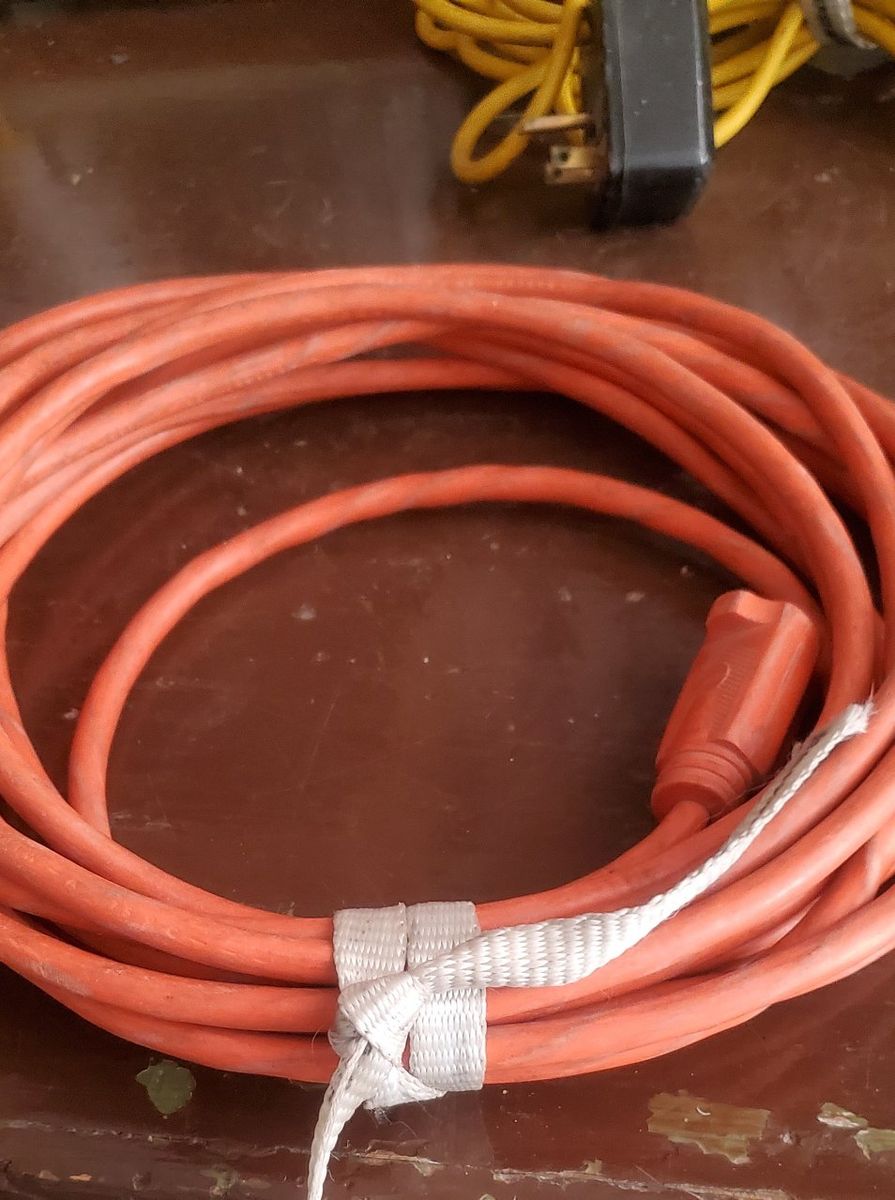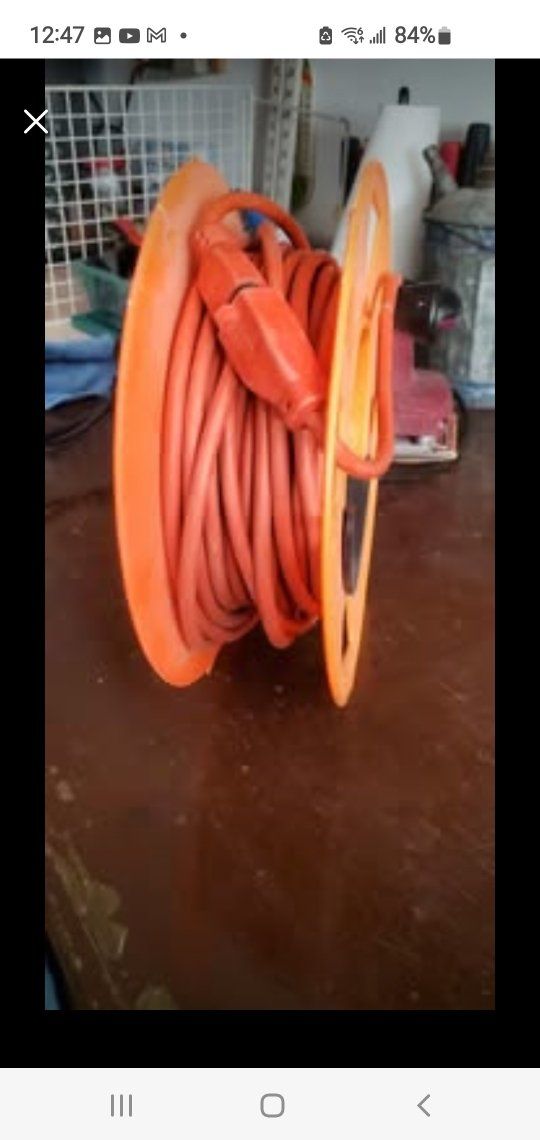100 ft cord reel w/ 50 ft cord. Cord works but has a few splits in orange outside. I put electrical tape over. $25. 25 ft cord works $10