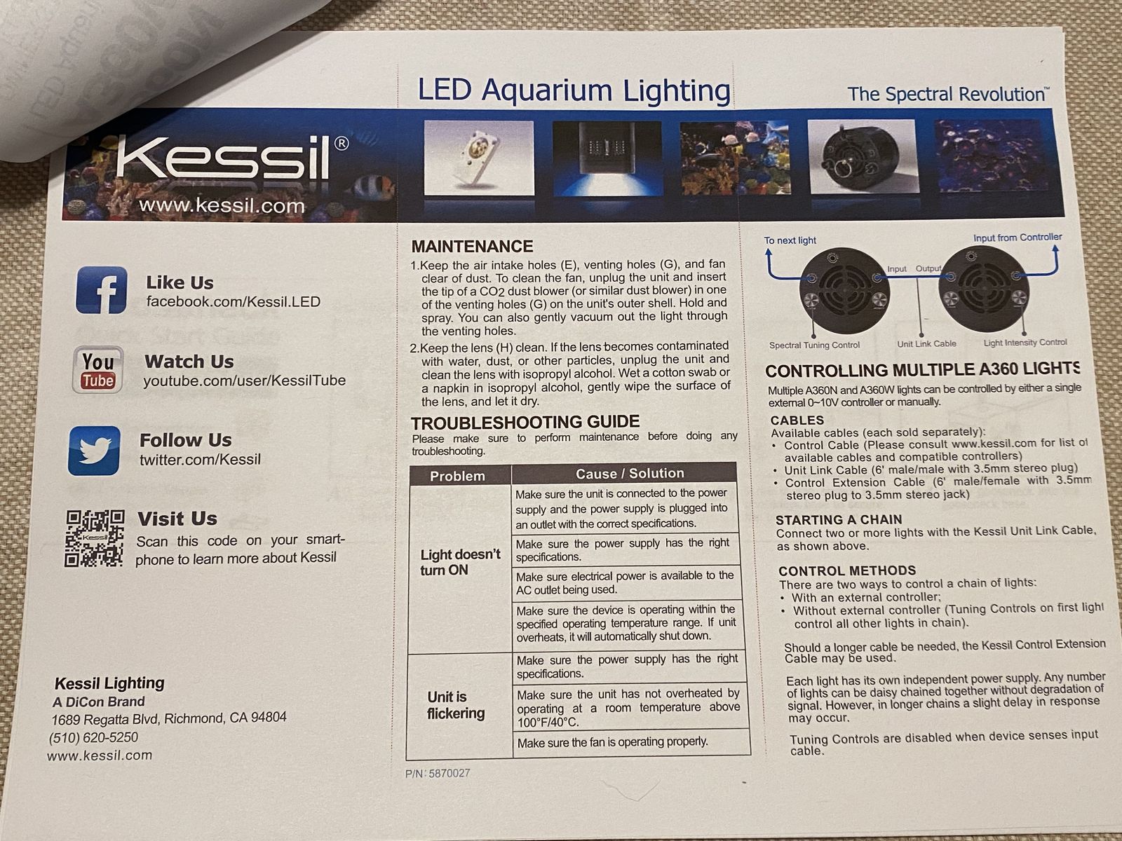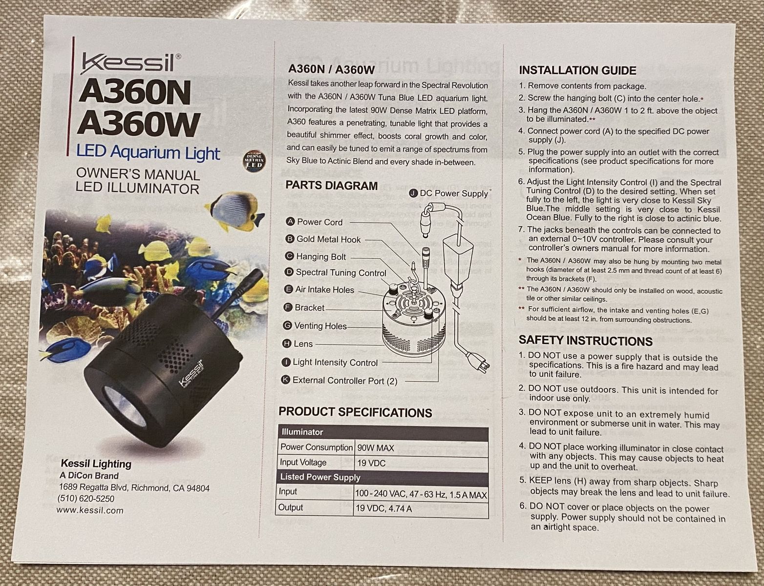 VenmoI have a Kessil A360W LED lighting system for sale. Includes the light fixture, a flexible gooseneck mounting system , the power cord / power supply / AC cord and complete installation instructions.