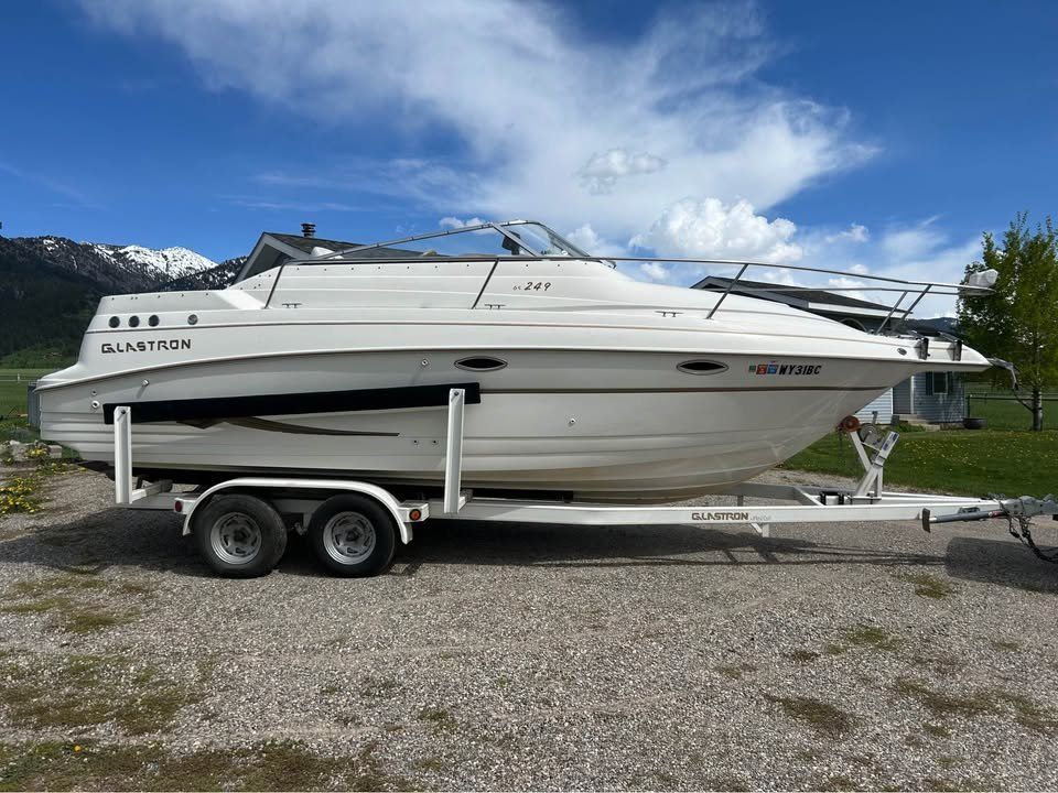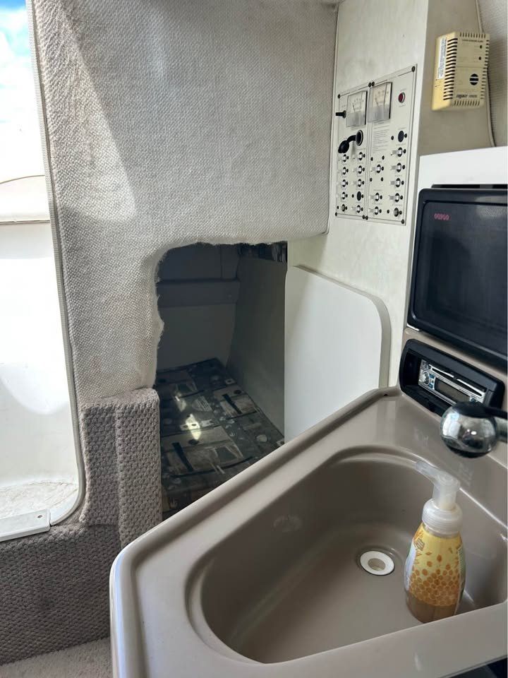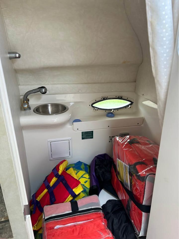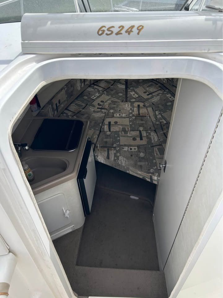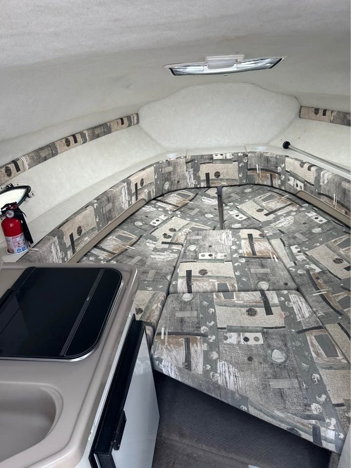 Inside, you’ll find two beds and a spacious layout—perfect for day trips or overnight adventures. The boat handles beautifully on the water. Please note: there are some minor upholstery flaws from sun exposure and age that aren’t visible in the photos.