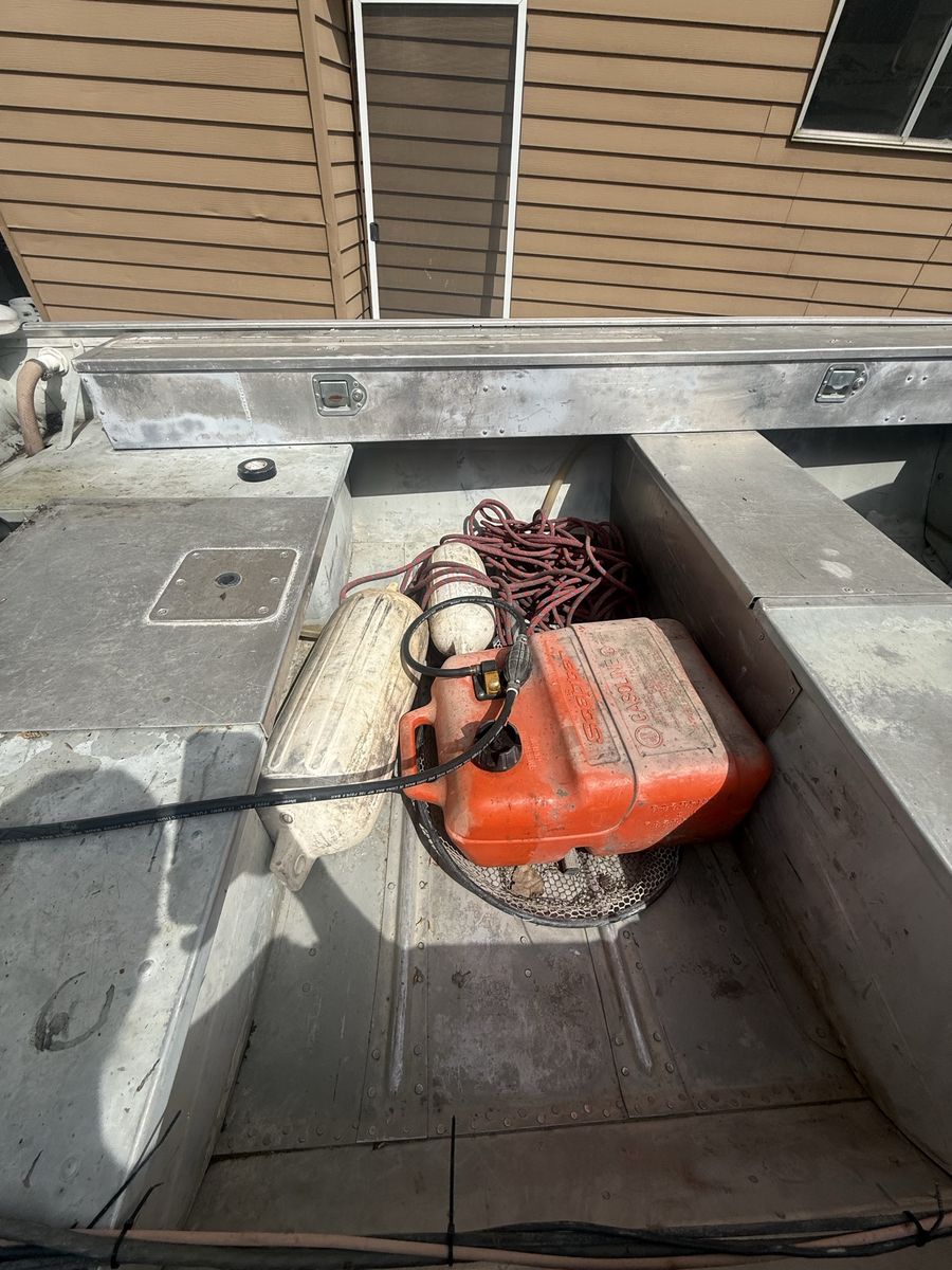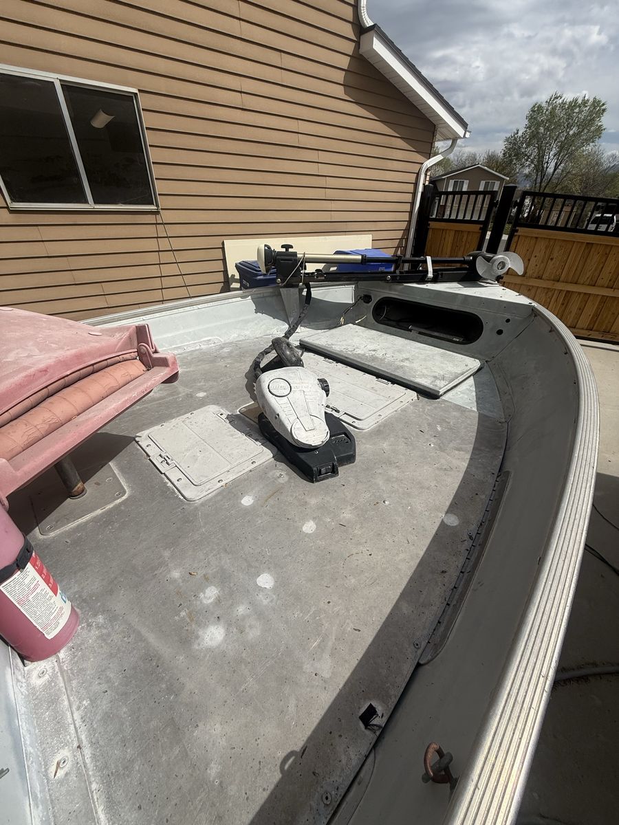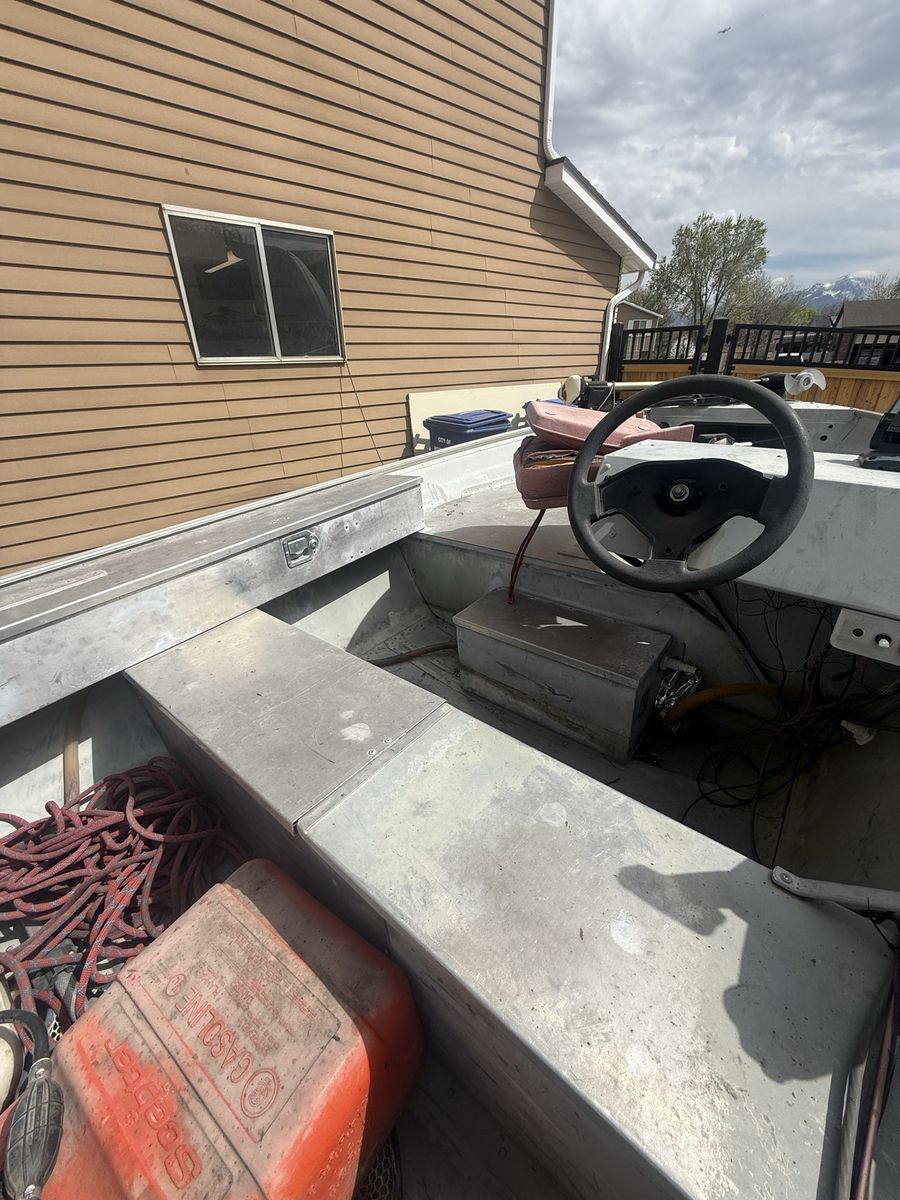 VenmoSolid hull with deck space and compartments for gear, trolling motor, ‘89 Johnson 25hp outboard, live well, and other storage along with a fish finder. The following components are newly replaced/rebuilt: carb and jets, fuel lines, fuel filter, fuel pump, water pump, coils, plugs, wires, starter solenoid, throttle control lever and cables. I recently did all this work to get her up to running order. Motor runs and pushes this Lowe boat just peachy. Perfect for a small family to have an evening out fishing. We don’t use it hardly ever and need space in my yard for extended garage I’m building.