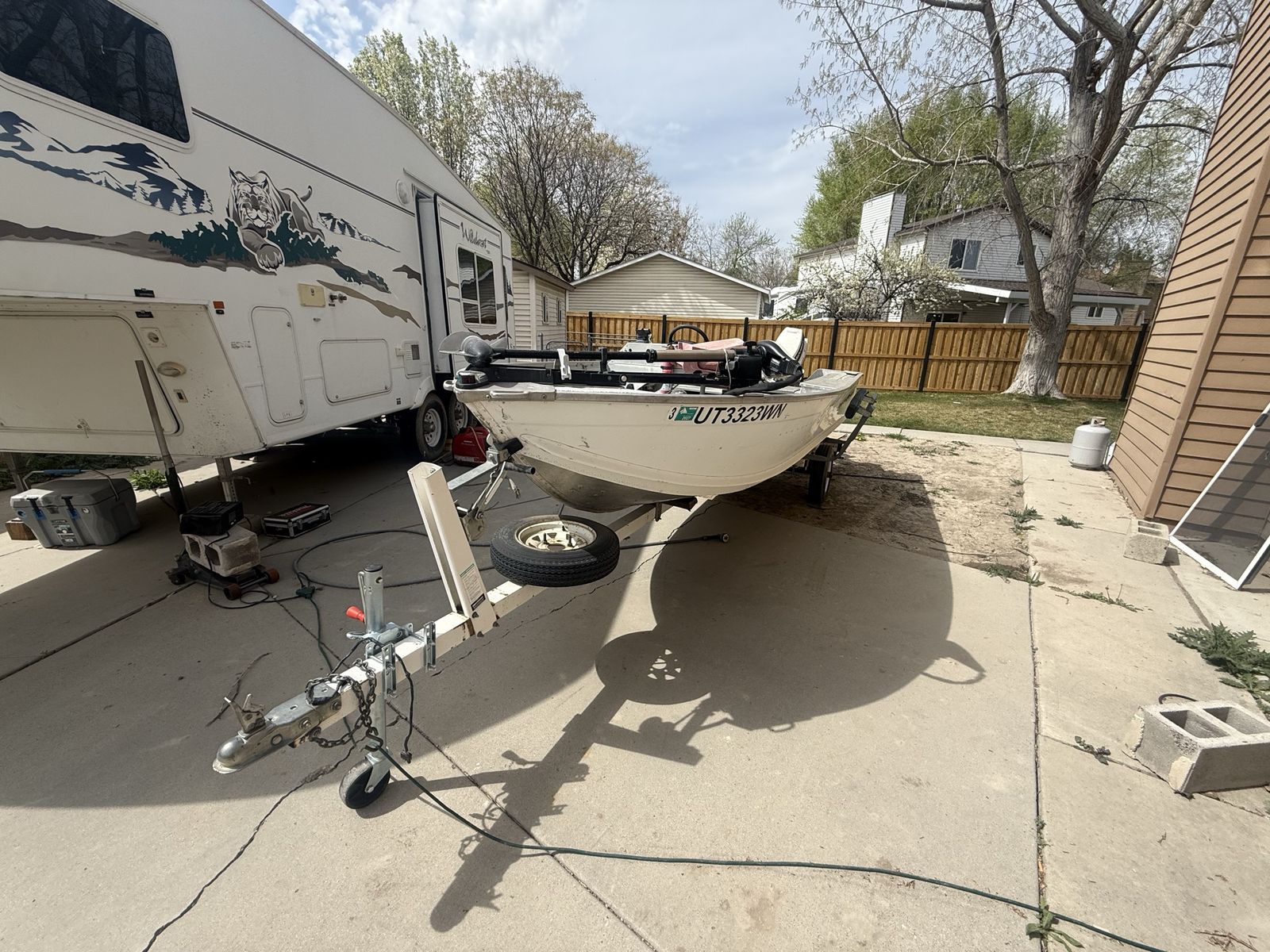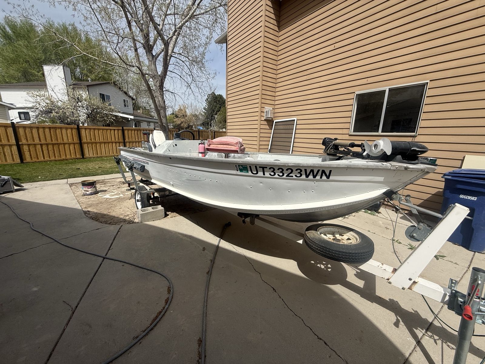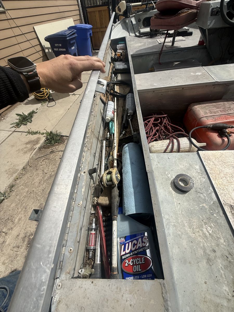VenmoSolid hull with deck space and compartments for gear, trolling motor, ‘89 Johnson 25hp outboard, live well, and other storage along with a fish finder. The following components are newly replaced/rebuilt: carb and jets, fuel lines, fuel filter, fuel pump, water pump, coils, plugs, wires, starter solenoid, throttle control lever and cables. I recently did all this work to get her up to running order. Motor runs and pushes this Lowe boat just peachy. Perfect for a small family to have an evening out fishing. We don’t use it hardly ever and need space in my yard for extended garage I’m building.