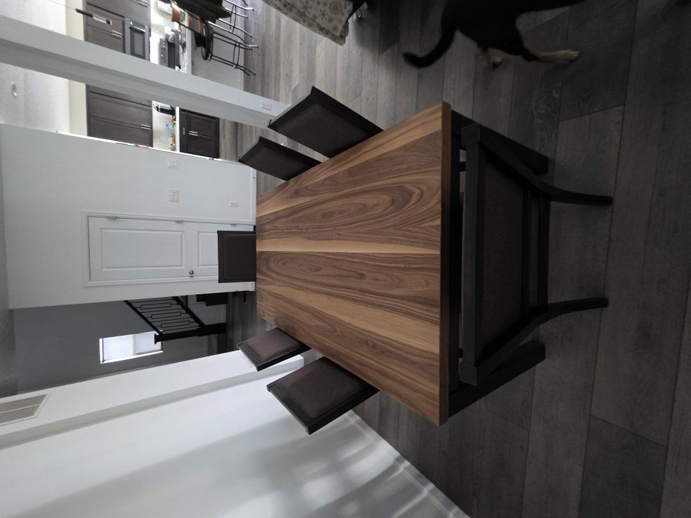 VenmoWood table, with mocha legs, like new with chairs to match.