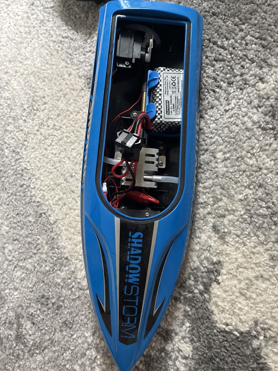 Great rc boat for beginners. Great for kids who want to have a little more fun when at the ocean or lake. Goes about 20-25 miles per hour. Has only been used a couple times and is basically new.