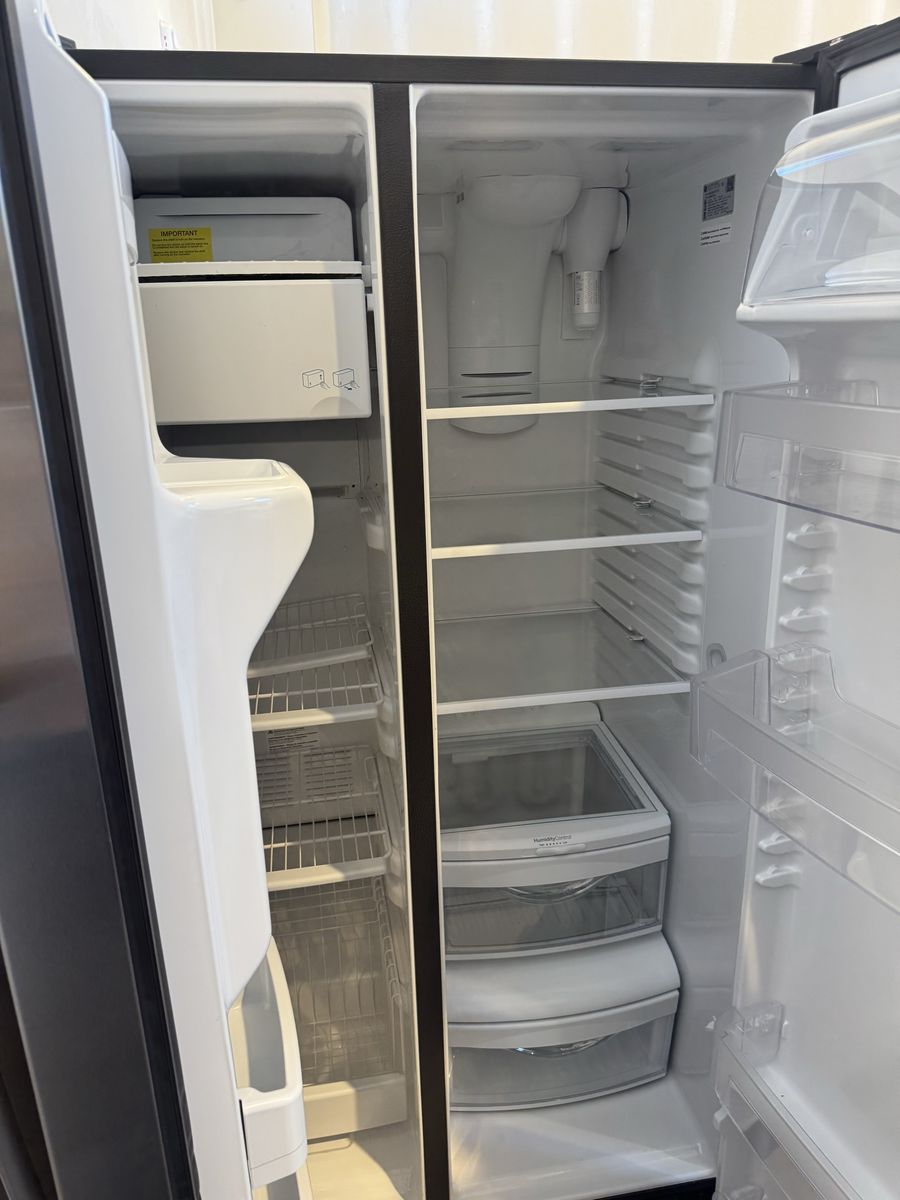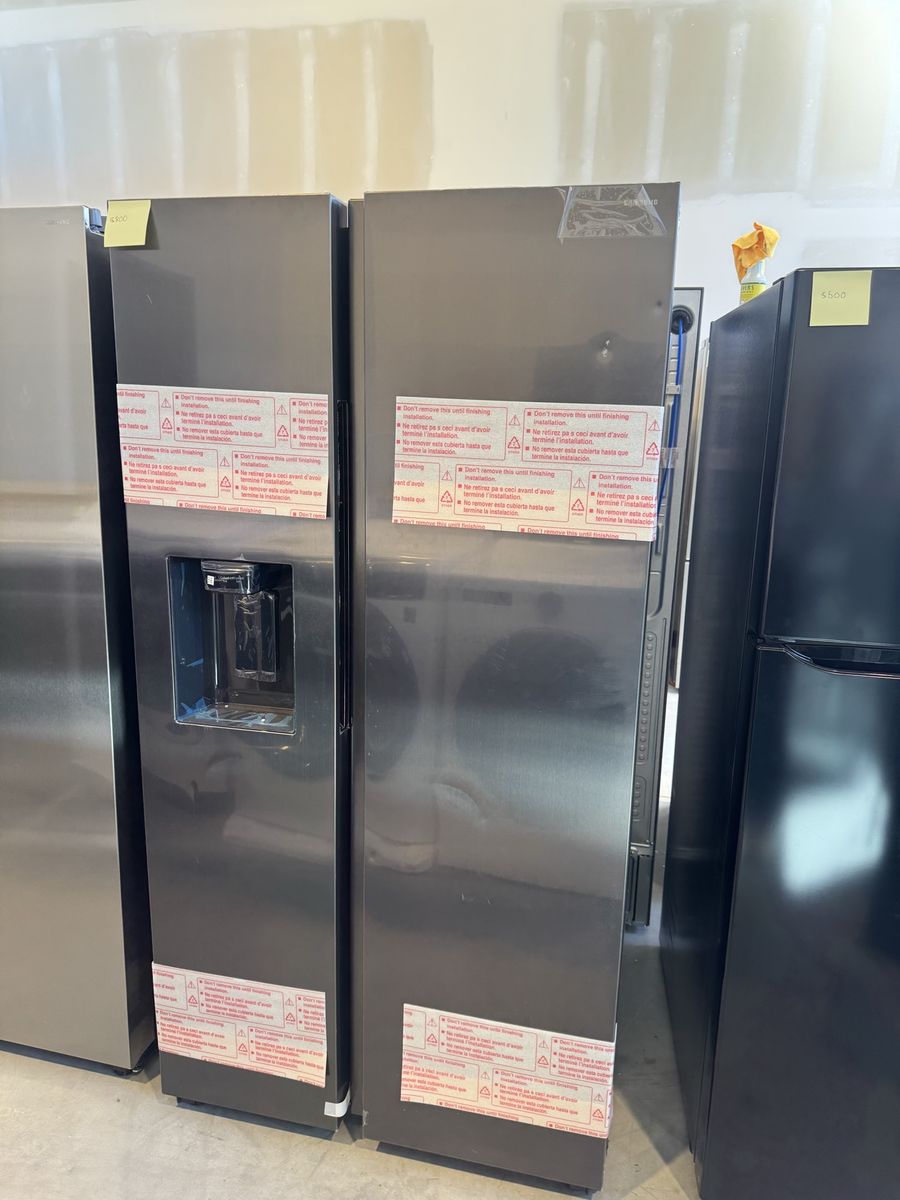 New Scratch and dent Samsung 27.4 cu. ft. Large Capacity Side by Side Refrigerator- black stainless steel.