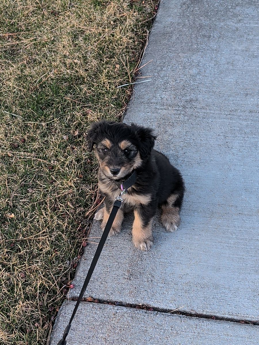 She has a beautiful black and tan coat, a sweet, curious personality, and is ready to find her forever home! She's doing great on a leash and loves exploring the outdoors.