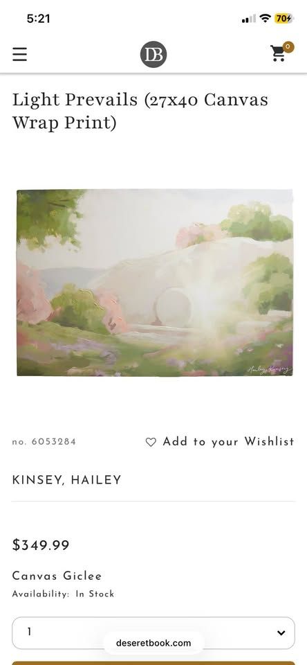 VenmoCanvas-wrapped print of “Light Prevails” painting by Hailey Kinsey. Beautiful depiction of the empty tomb, just in time for Easter! Canvas-wrapped print was uniquely hand-embellished by skilled artisans. Measures 40 inches by 27 inches (tissue box pictured in second photo for scale). Retails for $349.99. Canvas is in perfect condition. Price is $199 OBO!