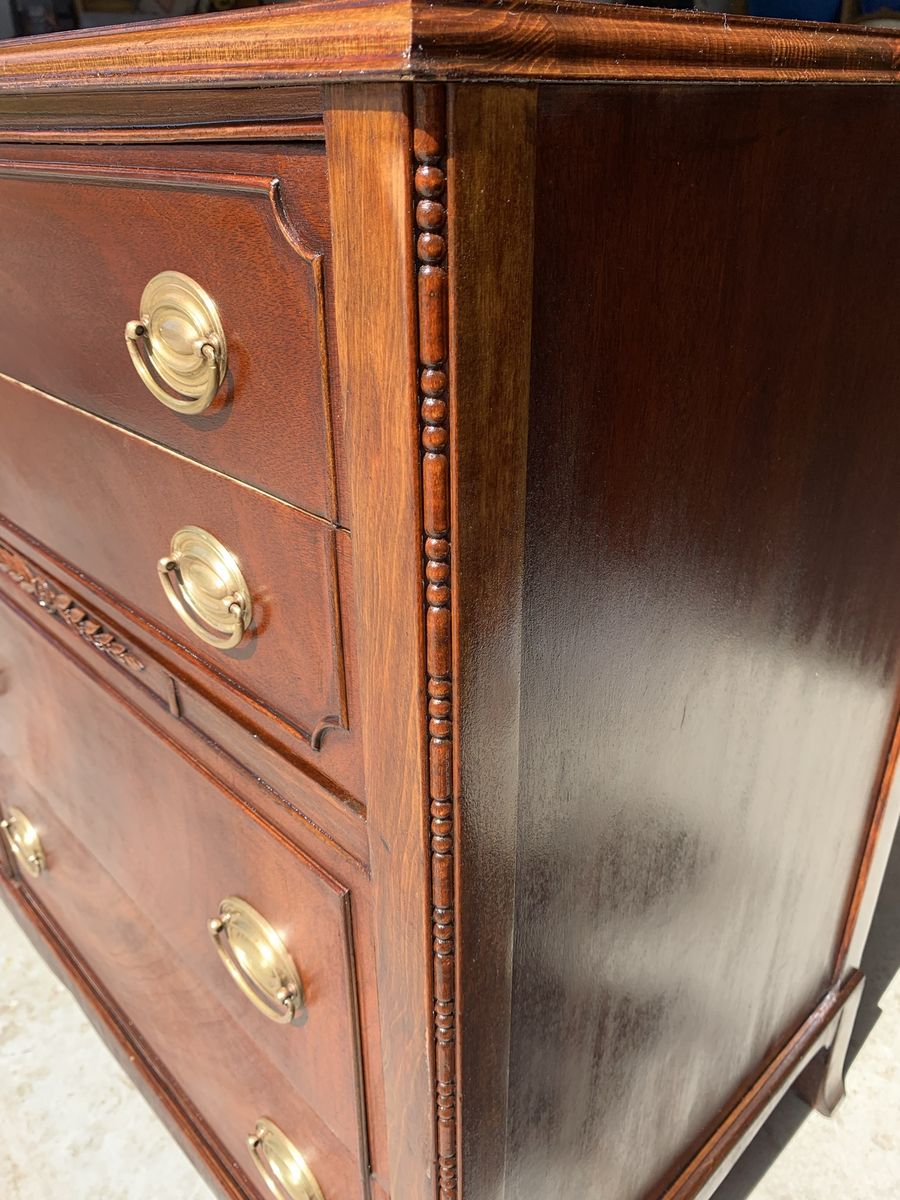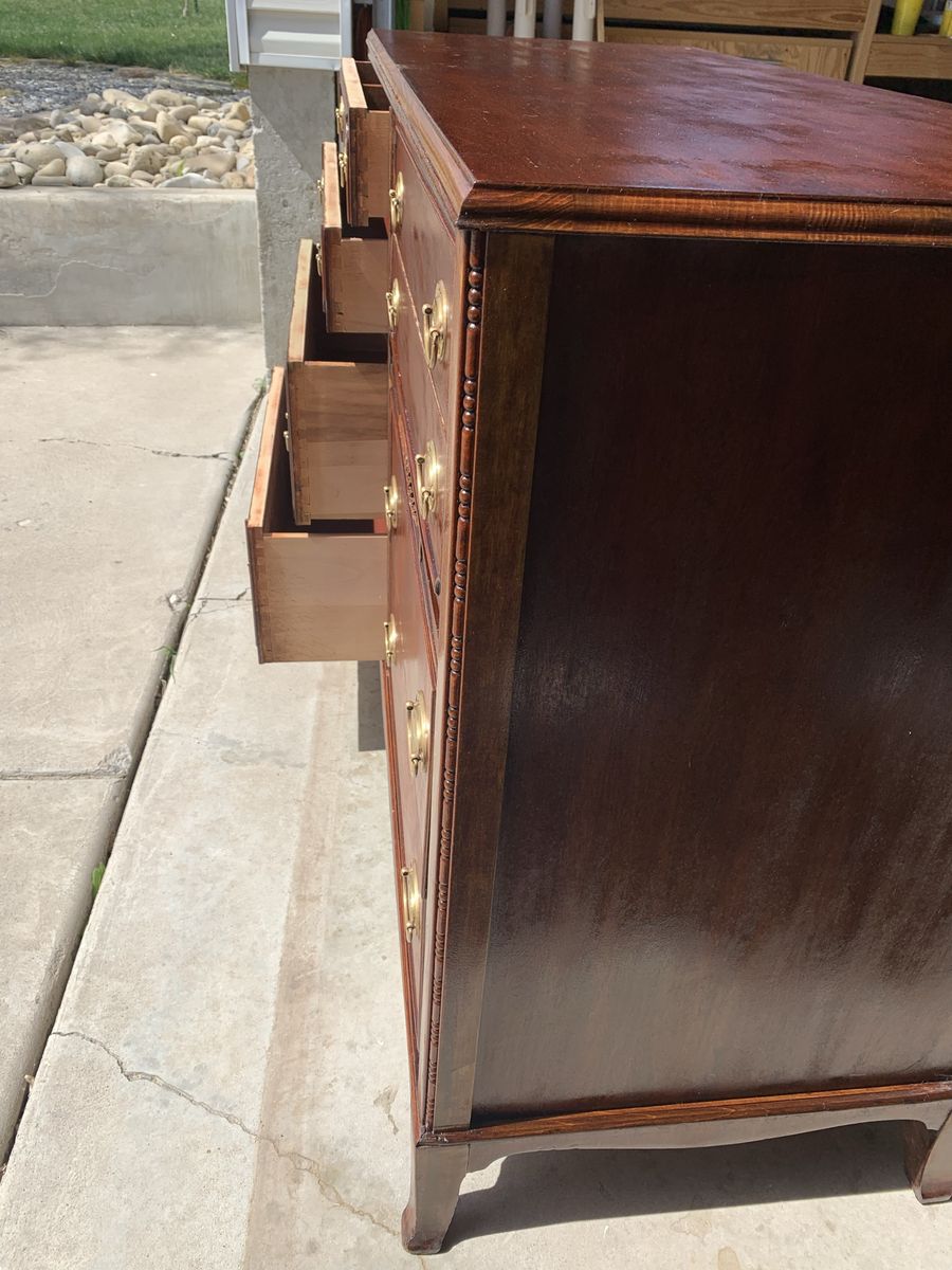 VenmoBeautiful mahogany dresser made by Thomasville. Probably made in the 1930s or 1940s. Dovetail drawers, brass hardware and mahogany veneer. There are a few stains inside the drawers. Great dresser! $350 obo. Thanks for looking.