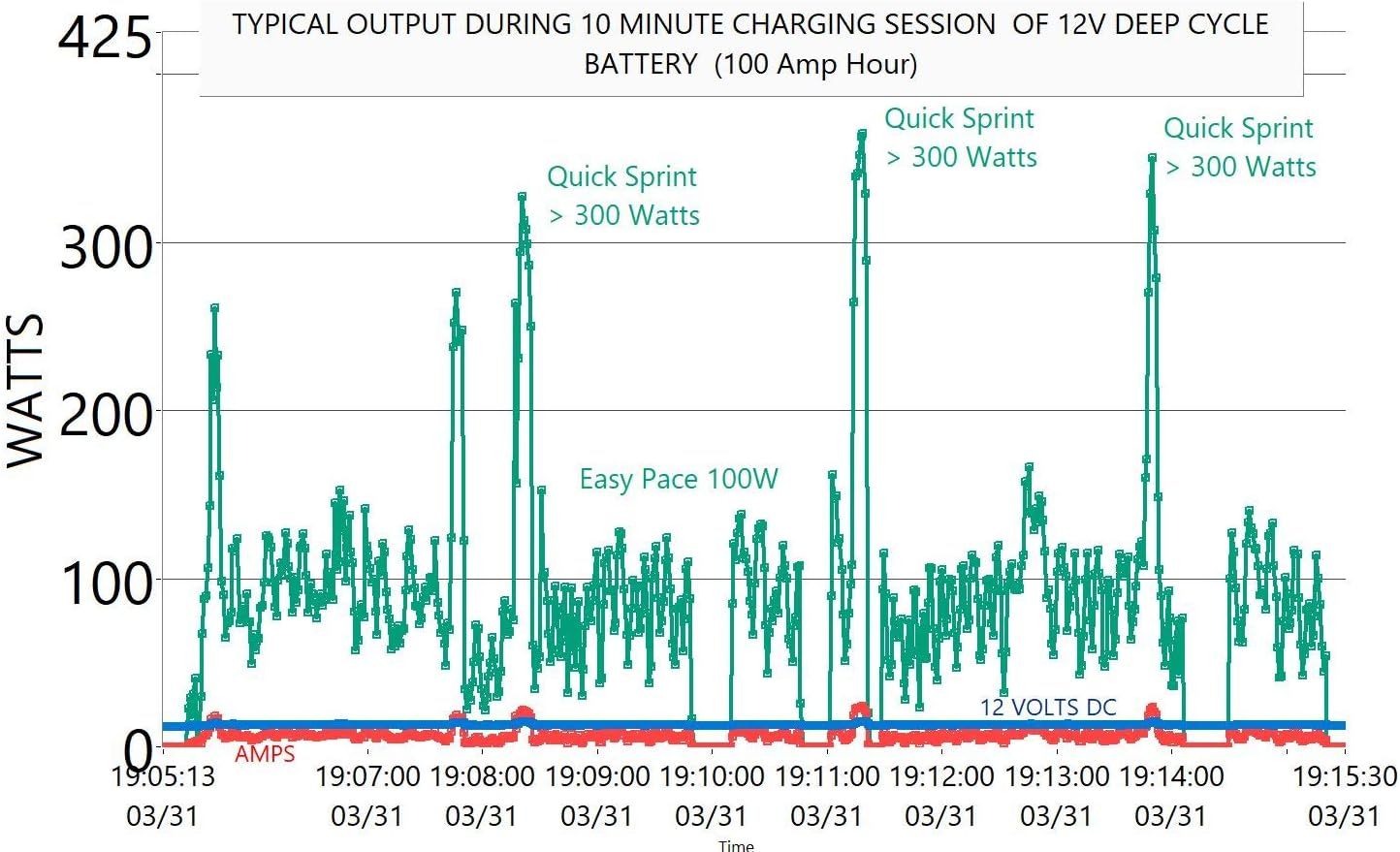 Up to 500 Watts Output Produces 0-100 Volts depending on speed and load. You can power light displays, bubble machines, fans, misting systems, floating balls (Bernoulli Effect), charge portable power stations to then charge phones and other small appliances, and so much more.