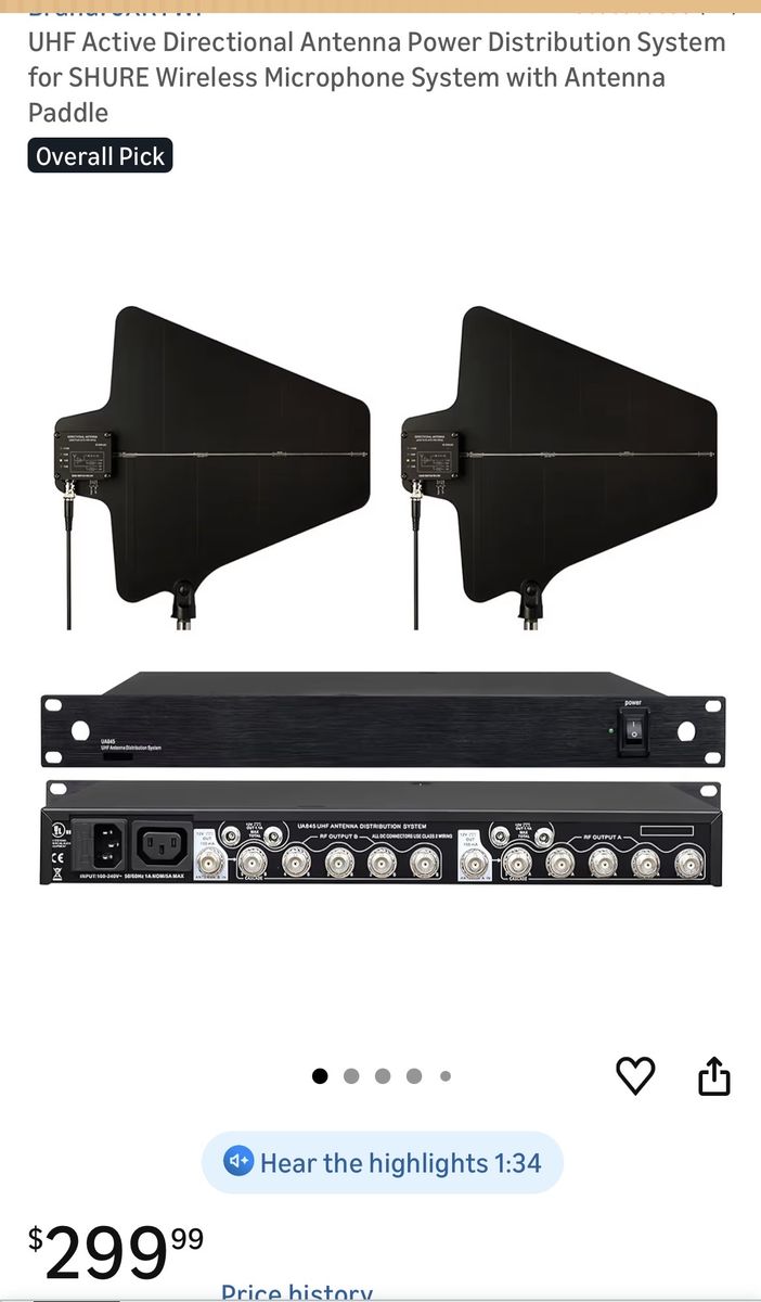 VenmoBrand New! UHF Active Directional Antenna Power Distribution System for SHURE Wireless Microphone System with Antenna Paddles. Opened box for pictures only. Pick up in Sandy.
