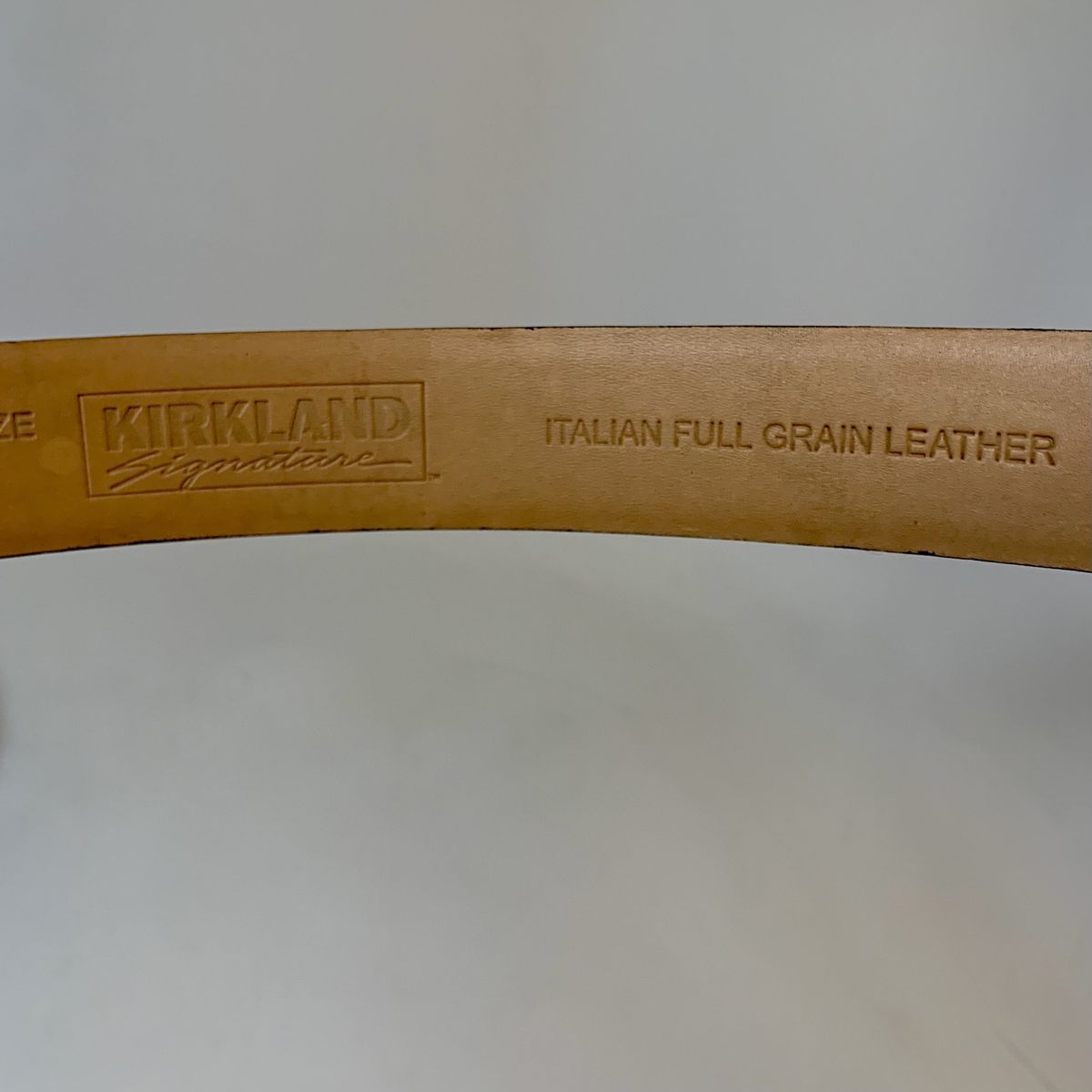 VenmoLike new condition Italian full grain black leather belt with metal buckle by Kirkland Signature. Only worn once, very nice dress belt for mens pants size 38 waist.