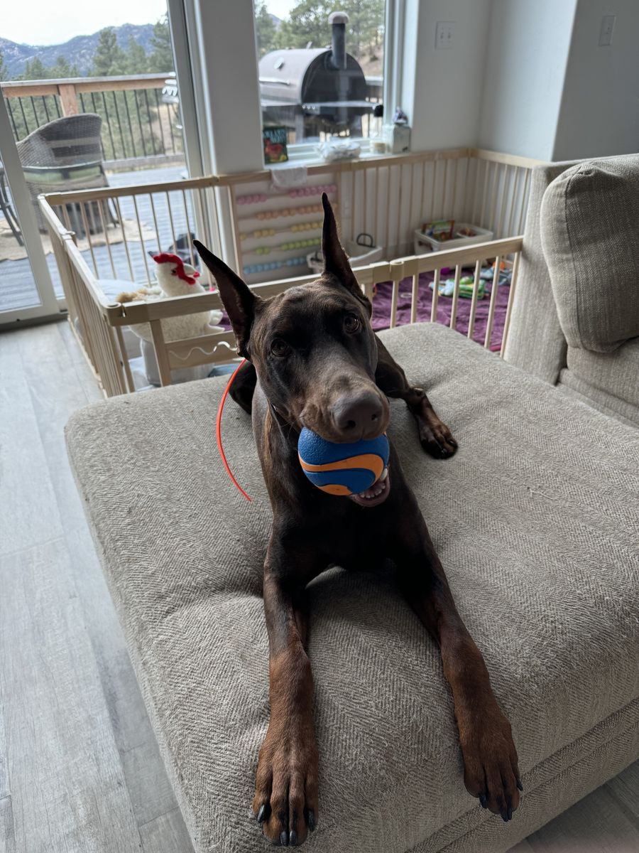 Huckleberry is an almost 4YO red/rust male doberman. He has been health tested and is ready for a female of no relation to him for breeding.