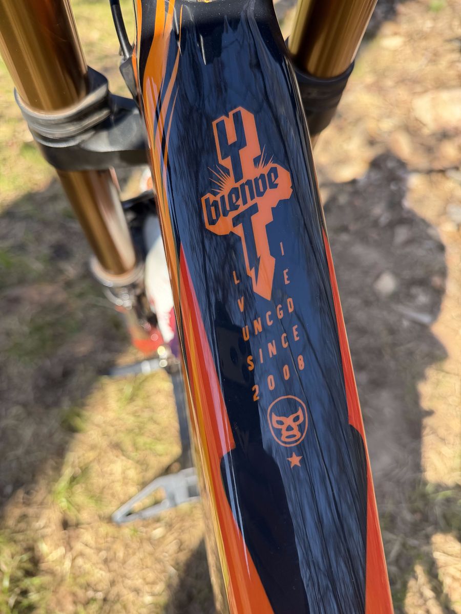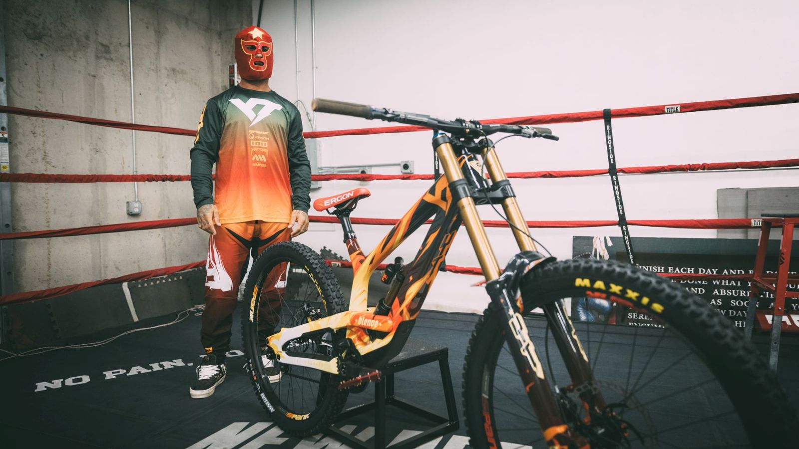 WHY THIS BIKE IS SPECIAL Actual Rampage program bike from 2023. Ridden by Bienvenido Aguado Alba. Featured in Pinkbike and Red Bull media. Custom Lucha Libre–inspired paint design. Previously displayed at the YT Mill in Bentonville, AR.
