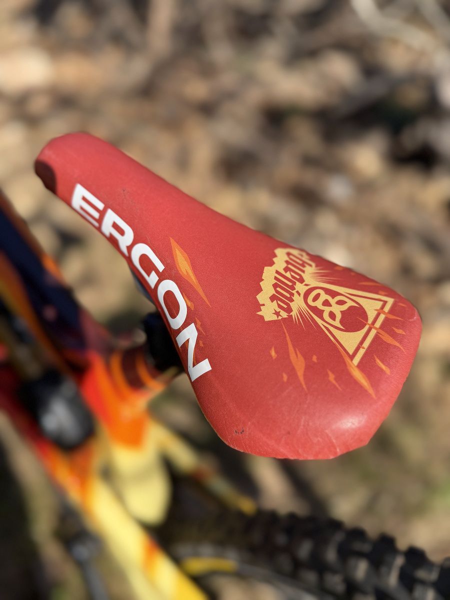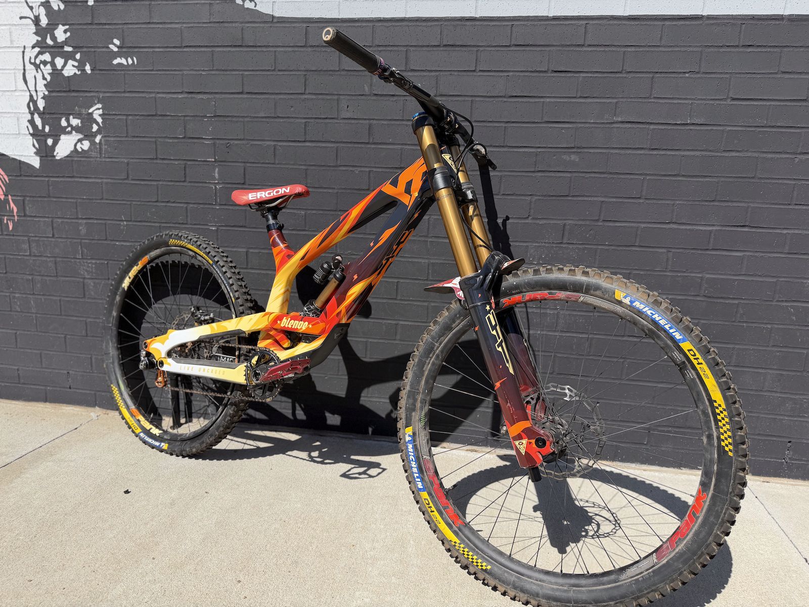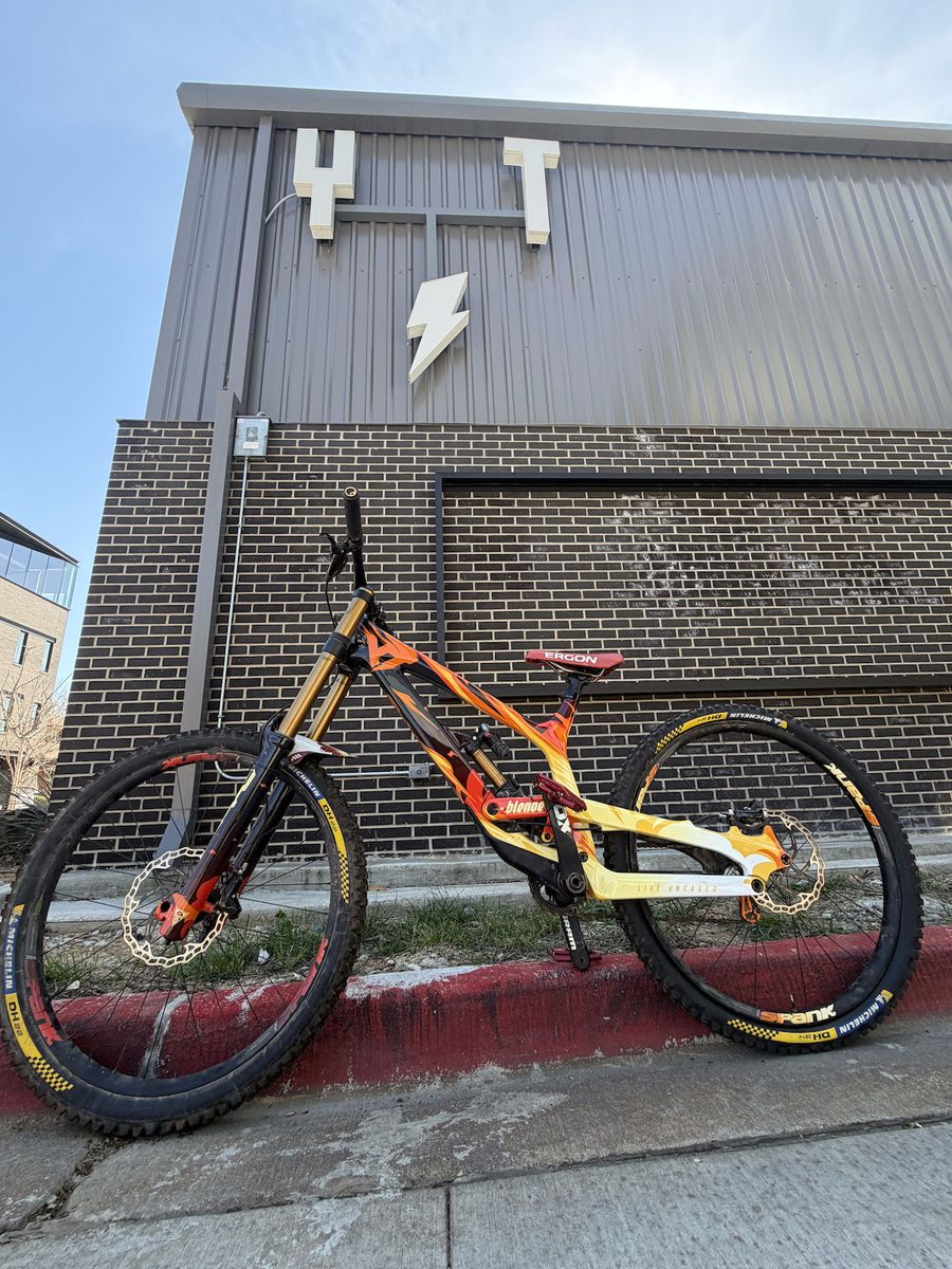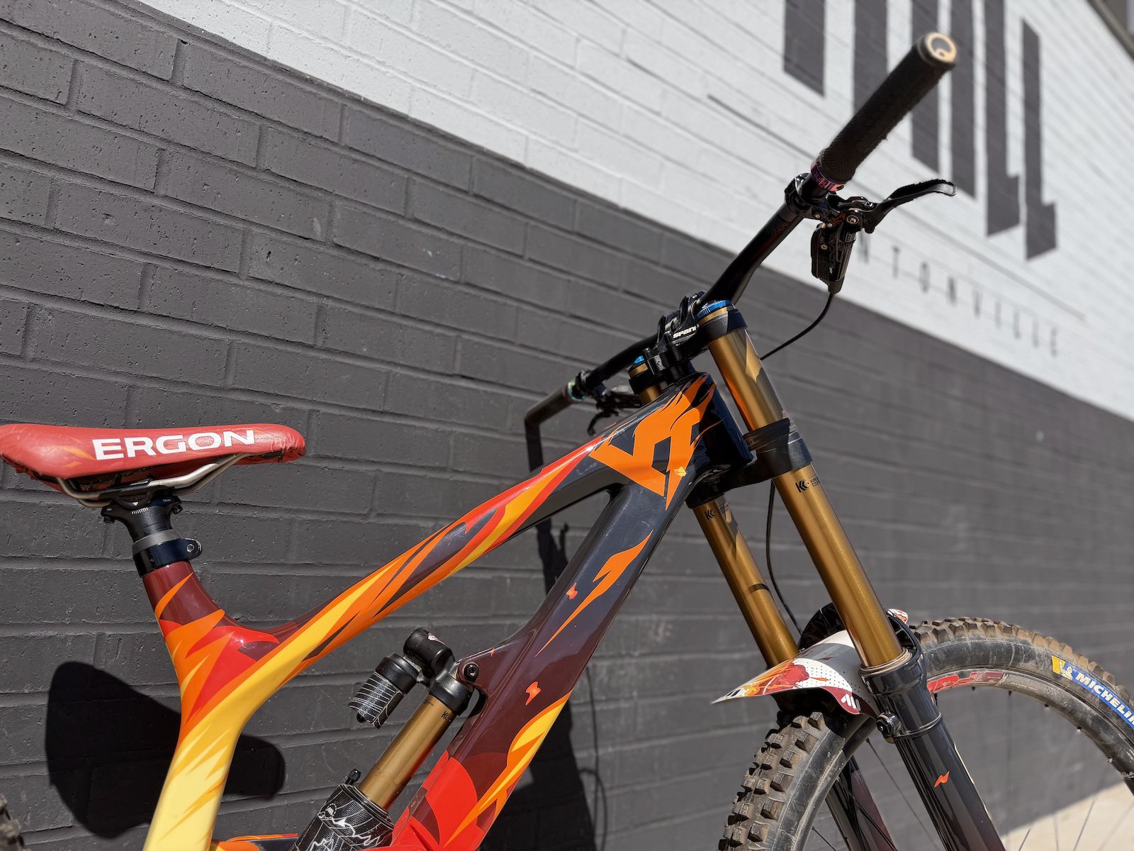 This is a rare opportunity to acquire the actual Rampage bike ridden by Bienvenido Aguado Alba during Red Bull Rampage 2023. Includes framed photo of Bienve with this bike at Rampage (shown in photos).