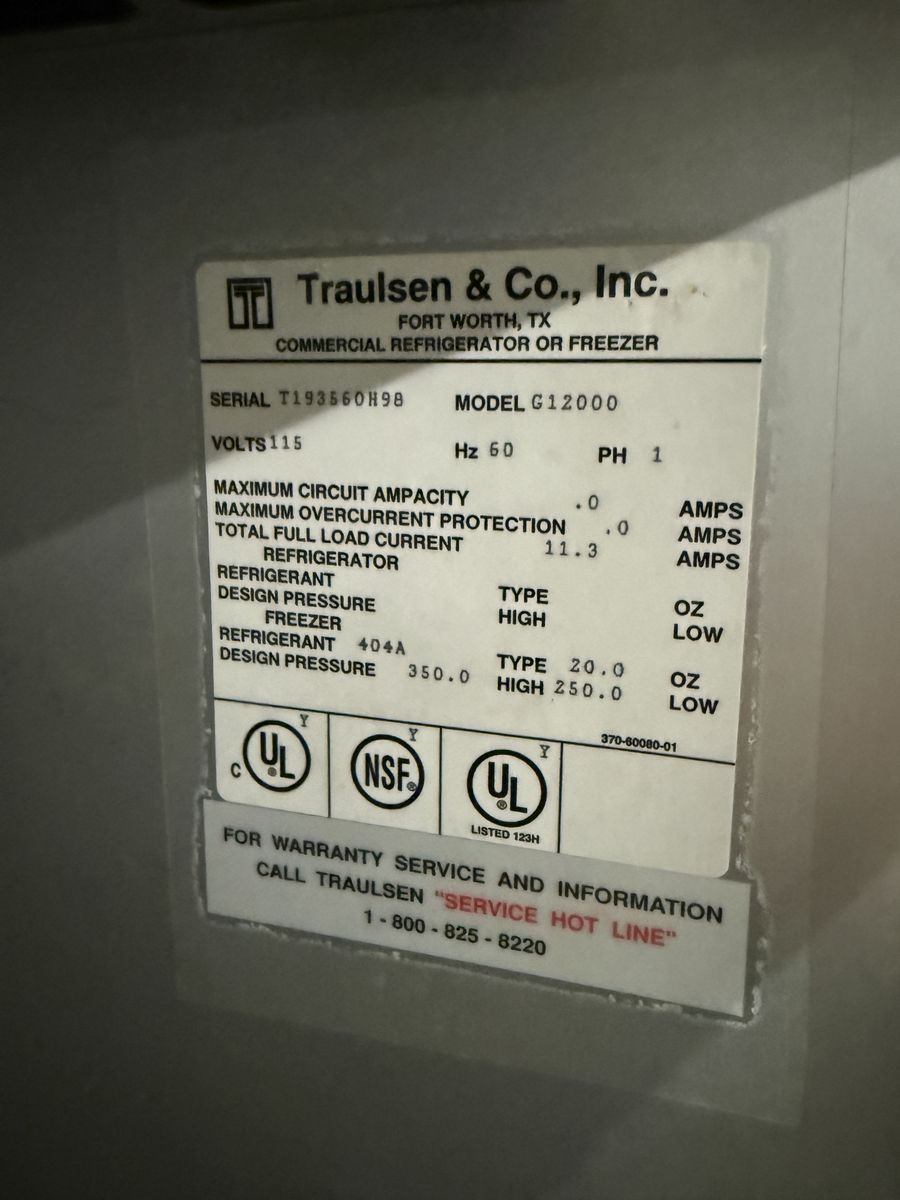 ApplePayTraulsen freezer upright, two door, model G12000 115 volts 1/2hp 1ph 60Hz
