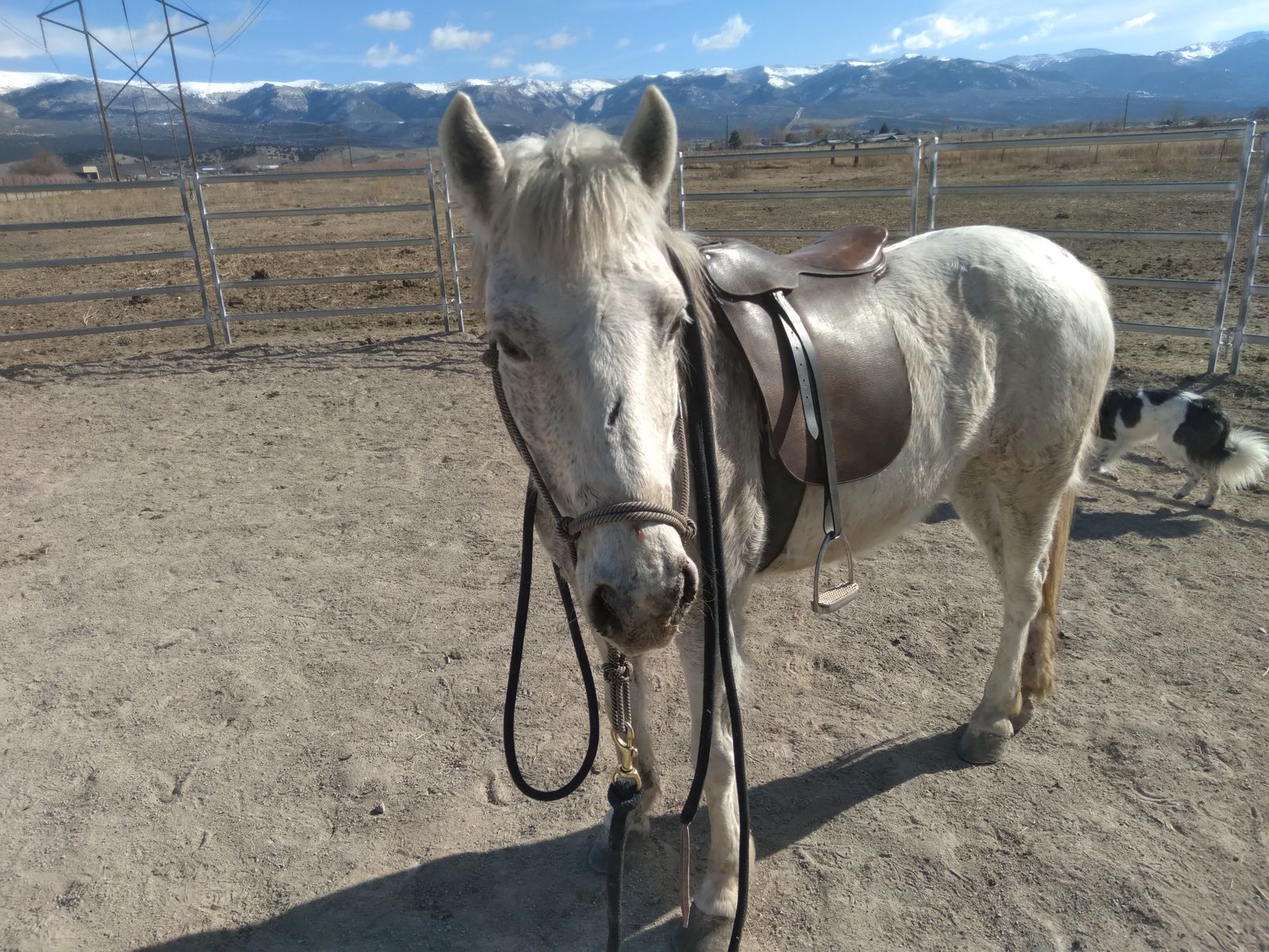 13+ hands. Got from rescue and can do it all, but have not ridden nor trailered yet. Smart. 5+ years and last from rescue said she is pregnant, but not sure.