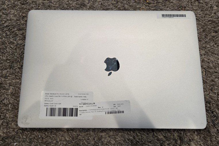 VenmoSelling a 2019 MacBook Pro 16-inch in good working condition. This is a powerful laptop that’s great for everyday use, school, or even heavier tasks like photo/video editing. Specs: 16-inch Retina display Intel Core i7 processor 16GB RAM 512GB SSD storage macOS installed and ready to go Touch Bar + Touch ID Condition: Fully functional, no issues Screen looks great (no cracks) Body shows normal wear from use (minor scuffs) Battery holds a charge (normal for age) Extras: Cleaned and reset for new owner Ready for immediate use