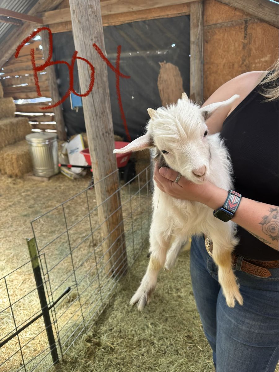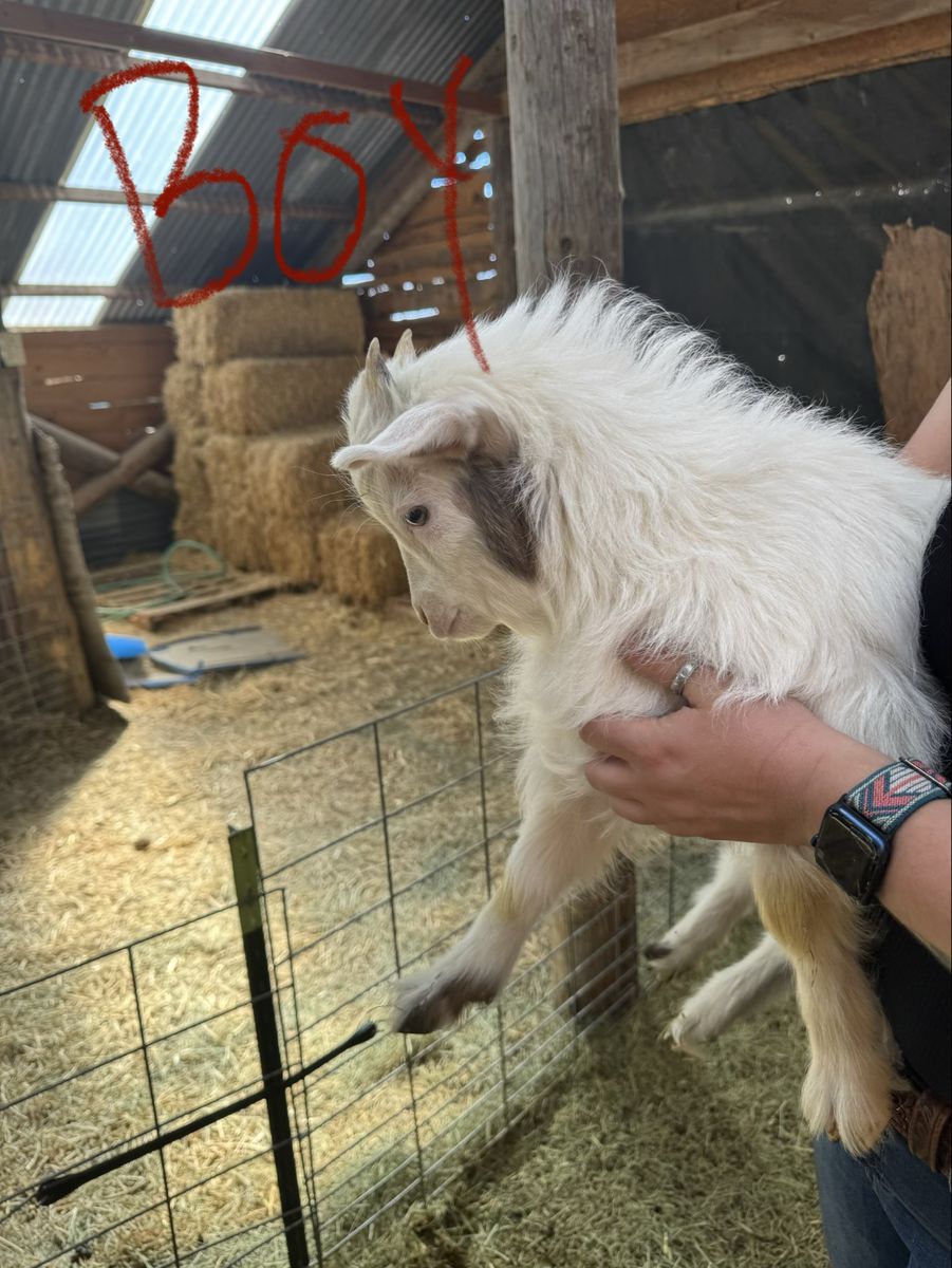 Handsome spring Buckling looking for a place to call home. Both mom and dad are silky fainting goats. He is not banded but can be upon request. $125
