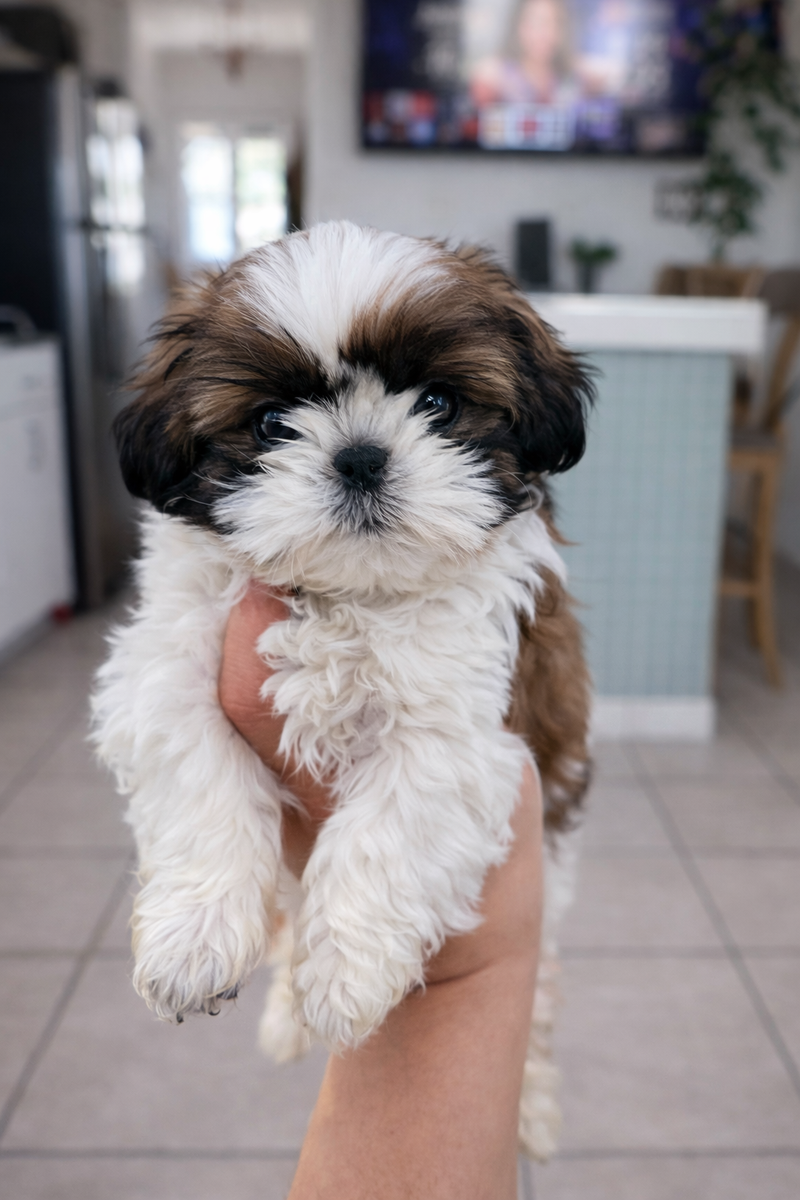 These little ones are raised in our home and handled daily, so they are extremely affectionate, social, and well-adjusted. Shih Tzus are known for their calm temperament, loyal personality, and incredible companionship — they truly bond deeply with their owners.