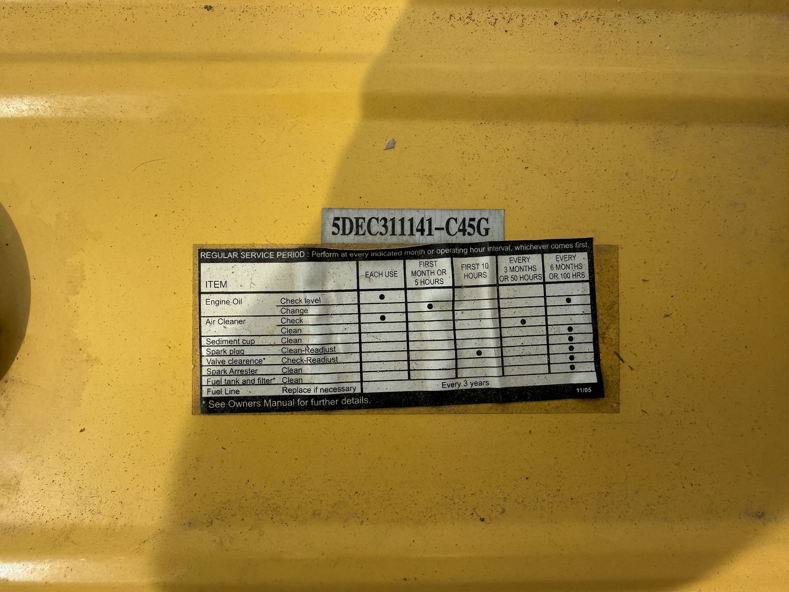 Details: 5500 starting watts / 4800 running watts Previously ran well Includes maintenance label with model/serial info (see photo)
