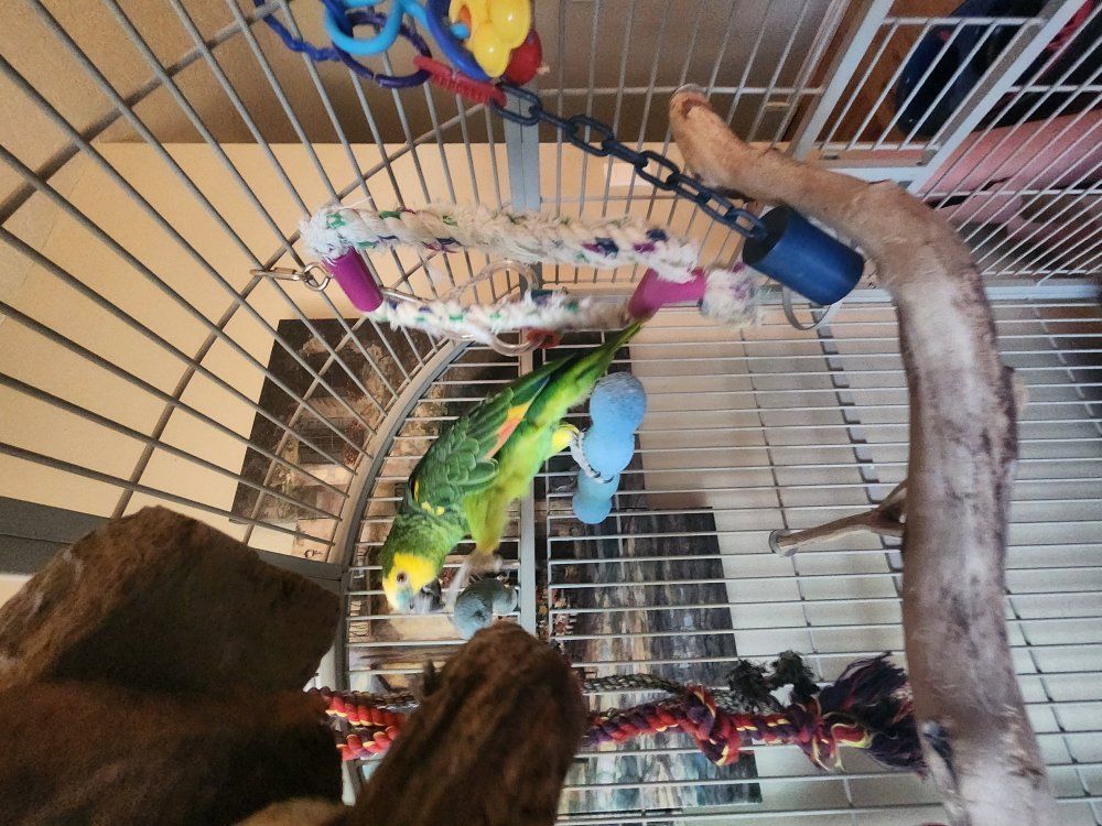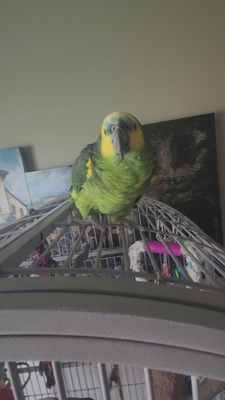 VenmoThis is Tiki. He is a very smart and loving bird. He loves to talk and wants nothing more than to be with people. He is 15 years old. He comes with his cage, snacks, and a big bag of his food. Only reason we are rehoming him is we had found out our youngest is allergic and our tries to mitigate it have failed. He knows more phrases than I could list but some of his notable ones are. Bye, I love you. Hello. pretty bird. He likes to whistle. He calls for kiddos by name. He likes to say his name a lot. And much more He likes to be on my shoulder or sit on the wife's leg. He has been sexed and is a male parrot. please reach out to me with any questions you could have