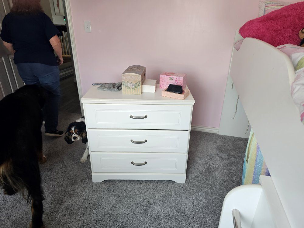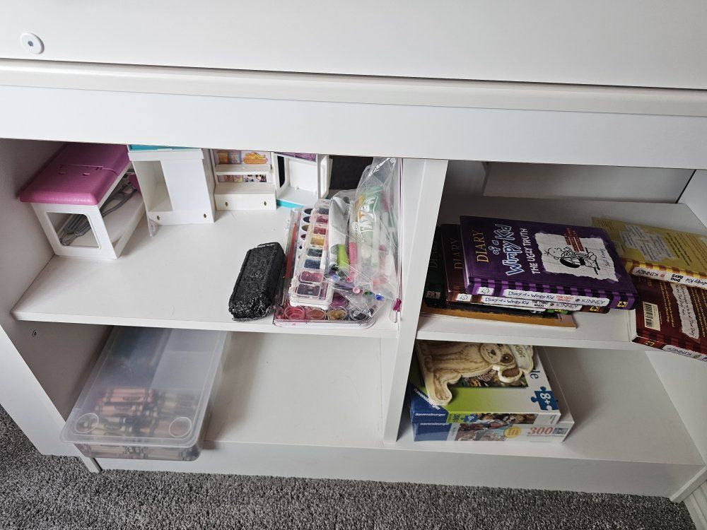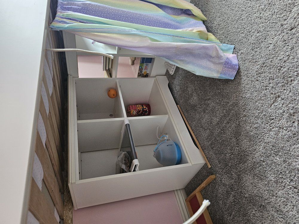 Venmowhite twin need with mattress. Two book shelves. one is attached the other is able to be moved. one 3